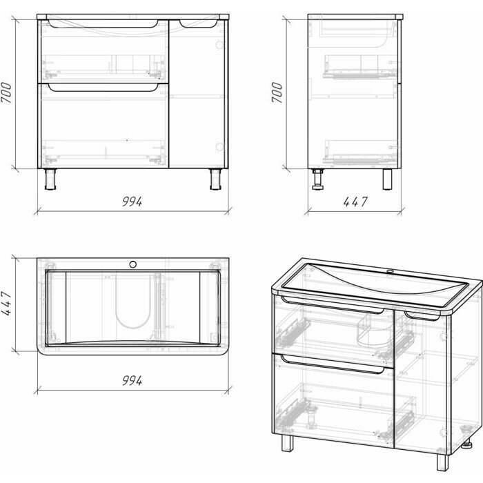 | СПЕЦ ГРУППА - Мебель для ванной | Тумбы, Тумбы под раковину с двумя ящиками, Тумбы под раковину, Тумбы под раковину шириной 100 см |