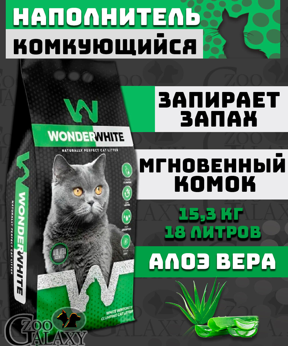 Наполнитель Wonder White Aloe Vera c ароматом алоэ вера комкующийся бентонит 153кг