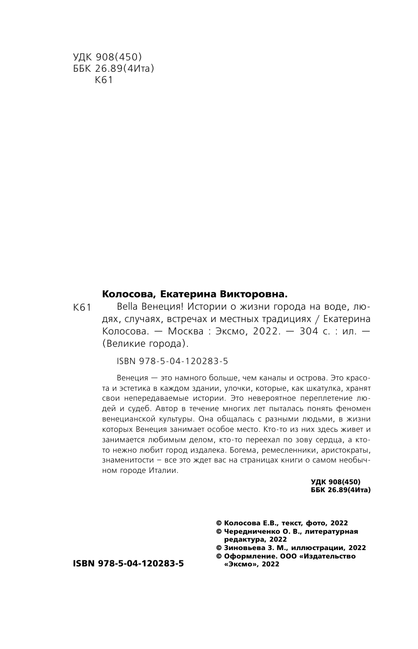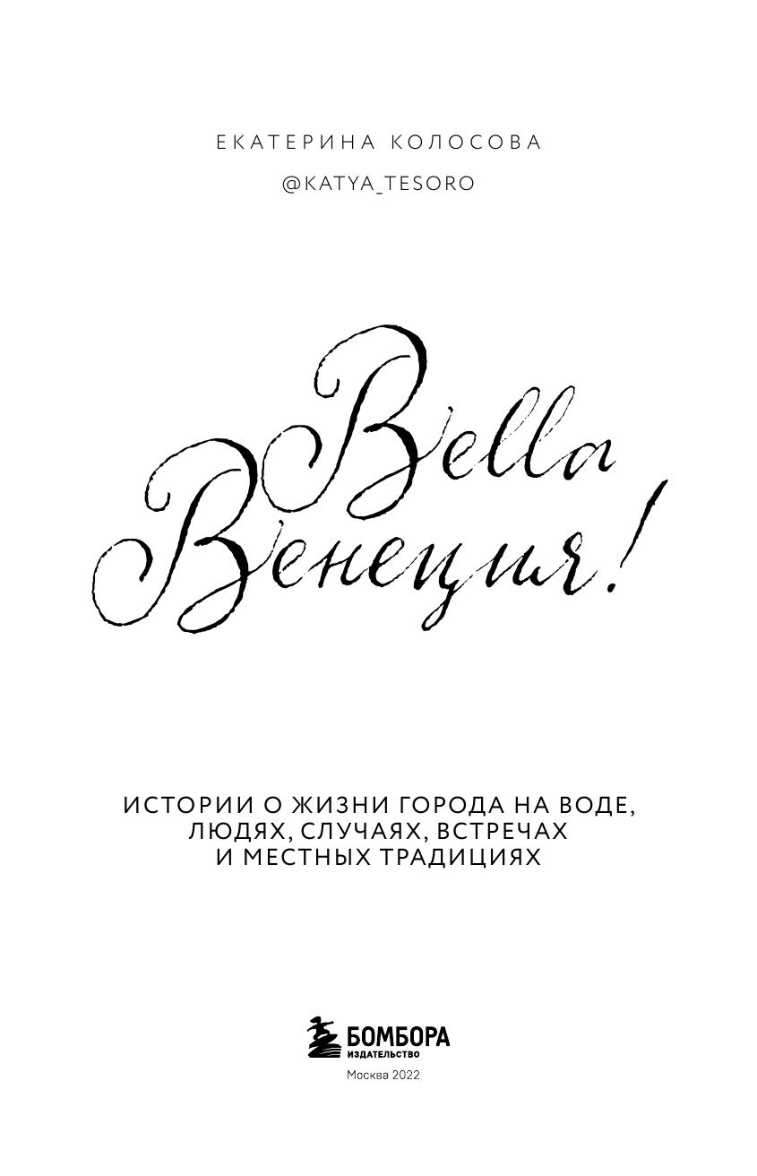 Bella Венеция! Истории о жизни города на воде людях случаях встречах и местных традициях (Екатерина Колосова); Эксмо, БОМБОРА, 2022