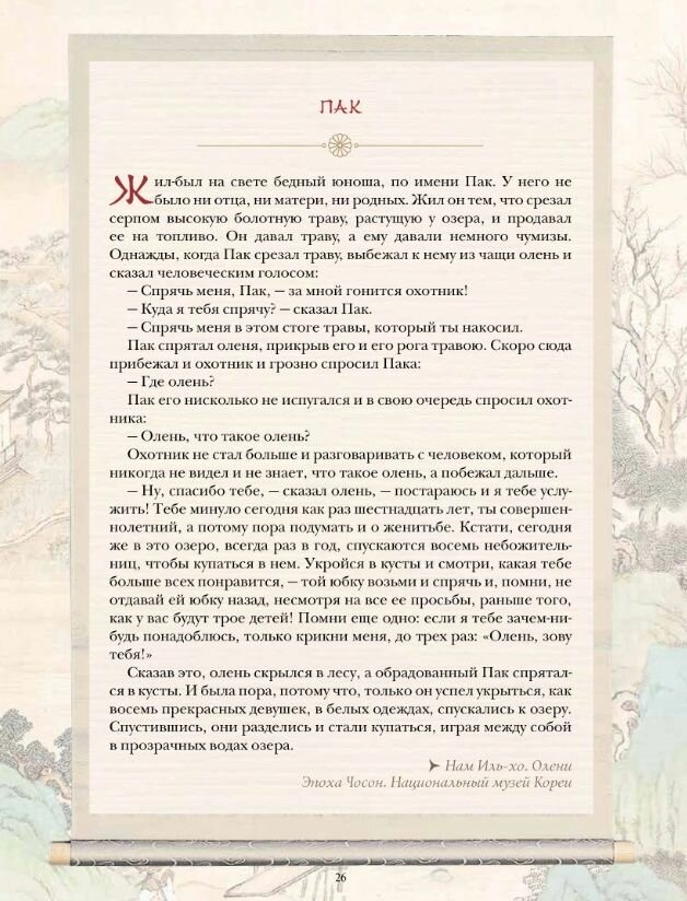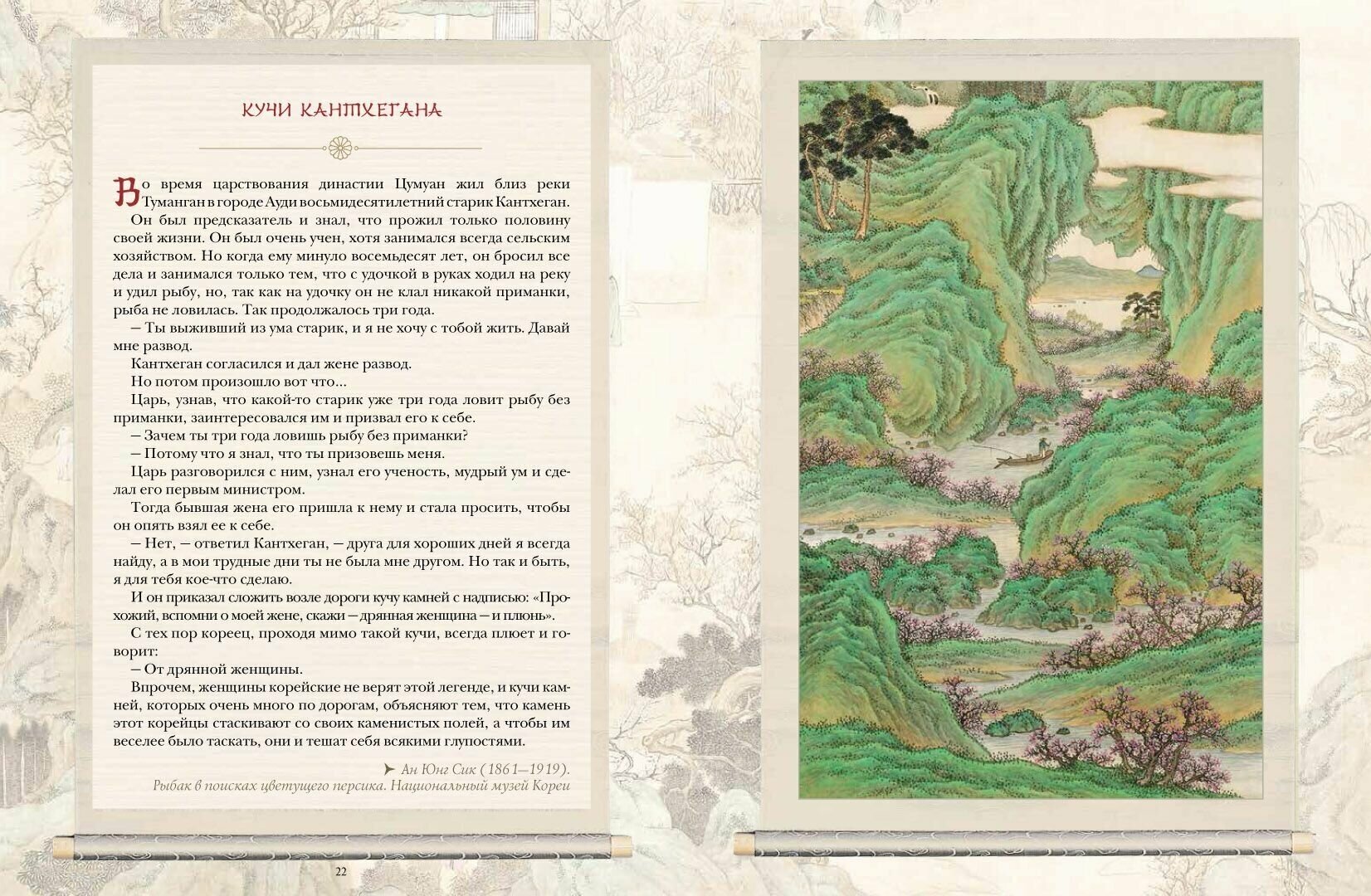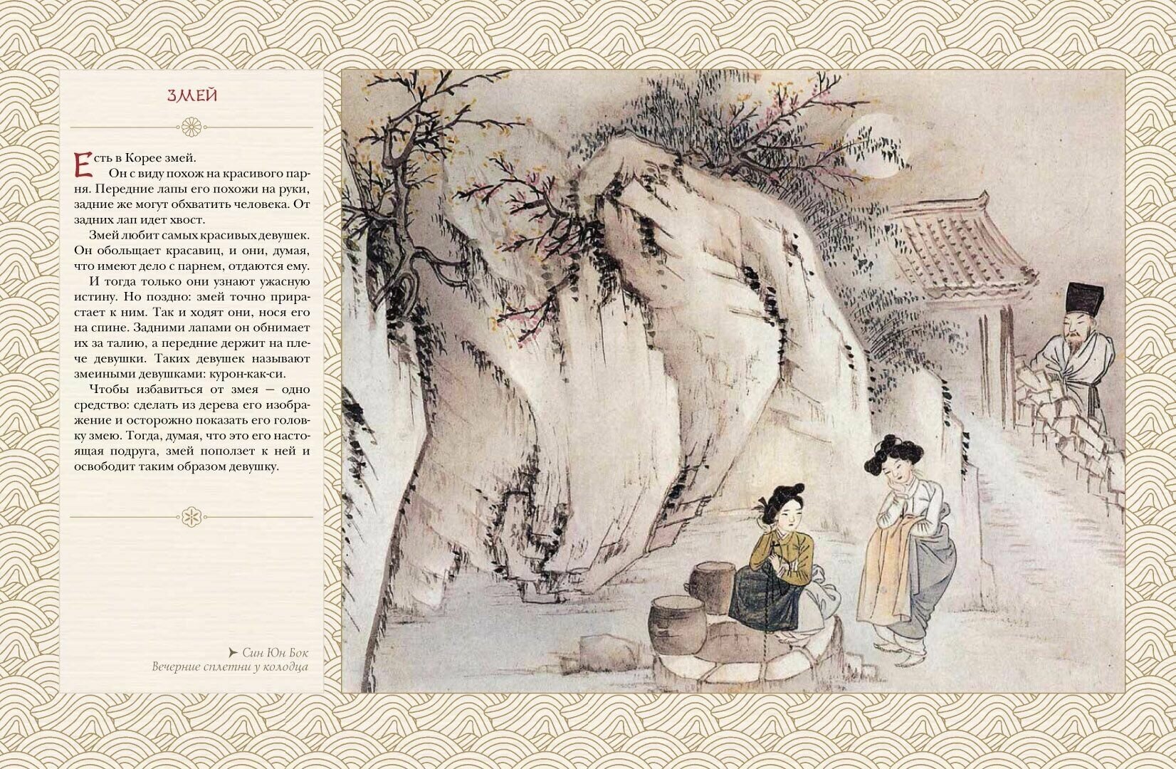 В книге более шестидесяти сказок, иллюстрированных работами корейских художников XVII-XIX веков, среди которых такие великие мастера, как Ким Джун Гын, Нам Иль Хо, Пэк Ын Бэ, Ким Хон До, Син Юн Бок.