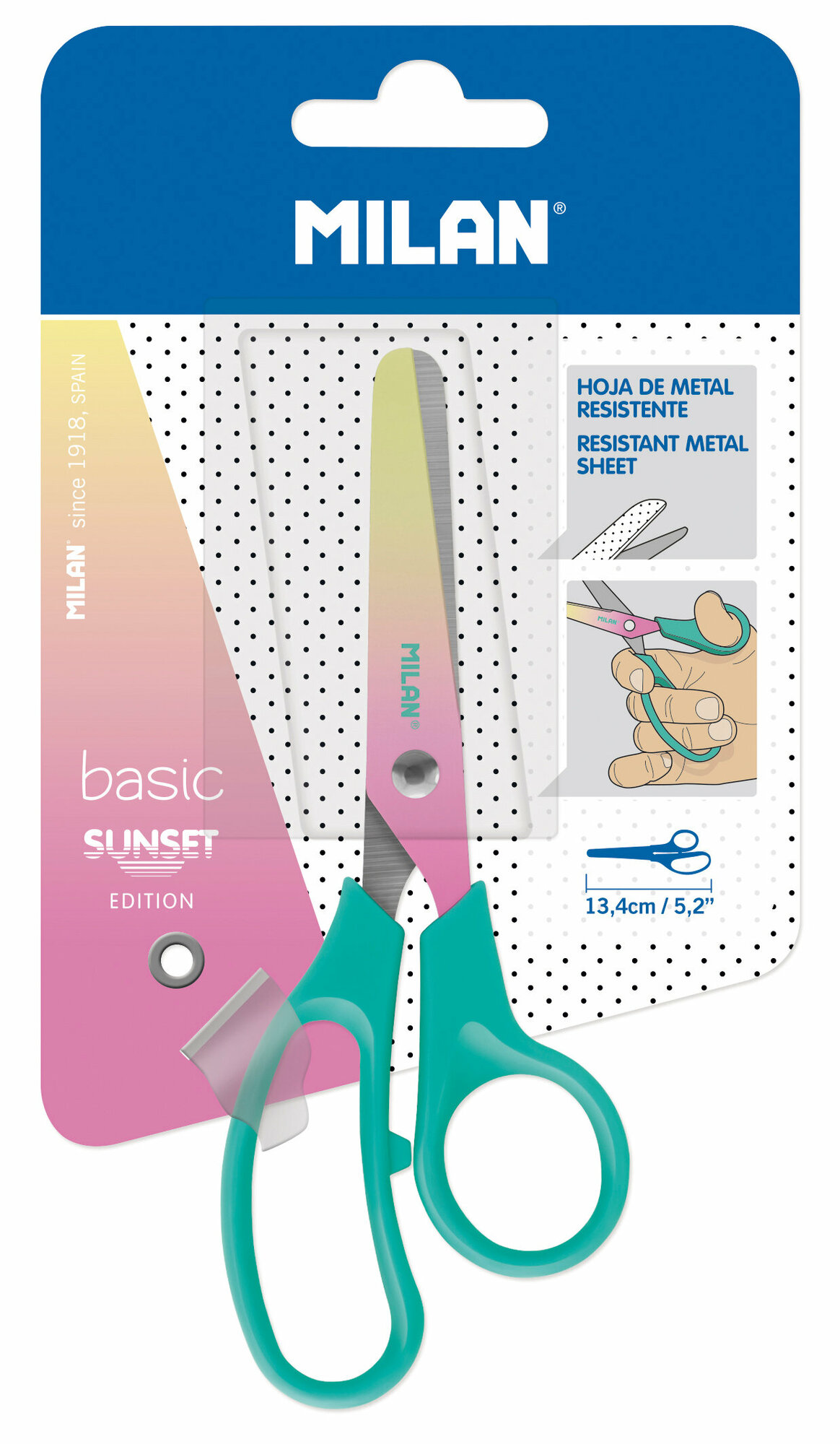 Канцелярские ножницы Basic Sunset в упаковке с европодвесом.