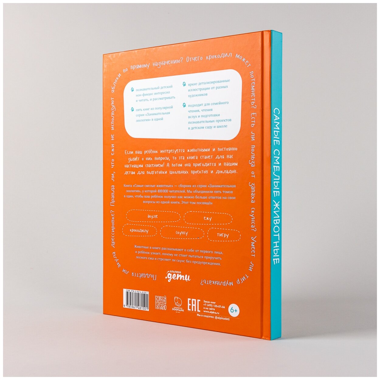 Если ваш ребенок интересуется животными и постоянно задает о них вопросы, то эта книга станет для вас настоящим спасением! А потом она пригодится и вашим детям для подготовки школьных проектов и докладов.Книга «Самые смелые животные» — сборник из серии «Занимательная зоология», у которой 400 000 читателей. Мы объединили пять томов в один, чтобы ваш ребенок получил как можно больше ответов на свои вопросы из одной книги. Этот том посвящен:акуле,ежу,крокодилу,скунсу,тигру.Животные в книге рассказывают о себе от первого лица, и ребенок узнает, почему не стоит пытаться приручить лесного ежа и стреляет ли скунс без предупреждения.Зачем читатьУзнать интересные факты о животных, которые знает не каждый взрослый;Расширить кругозор;Увлечься зоологией.Для когоДля детей 5-10 лет.