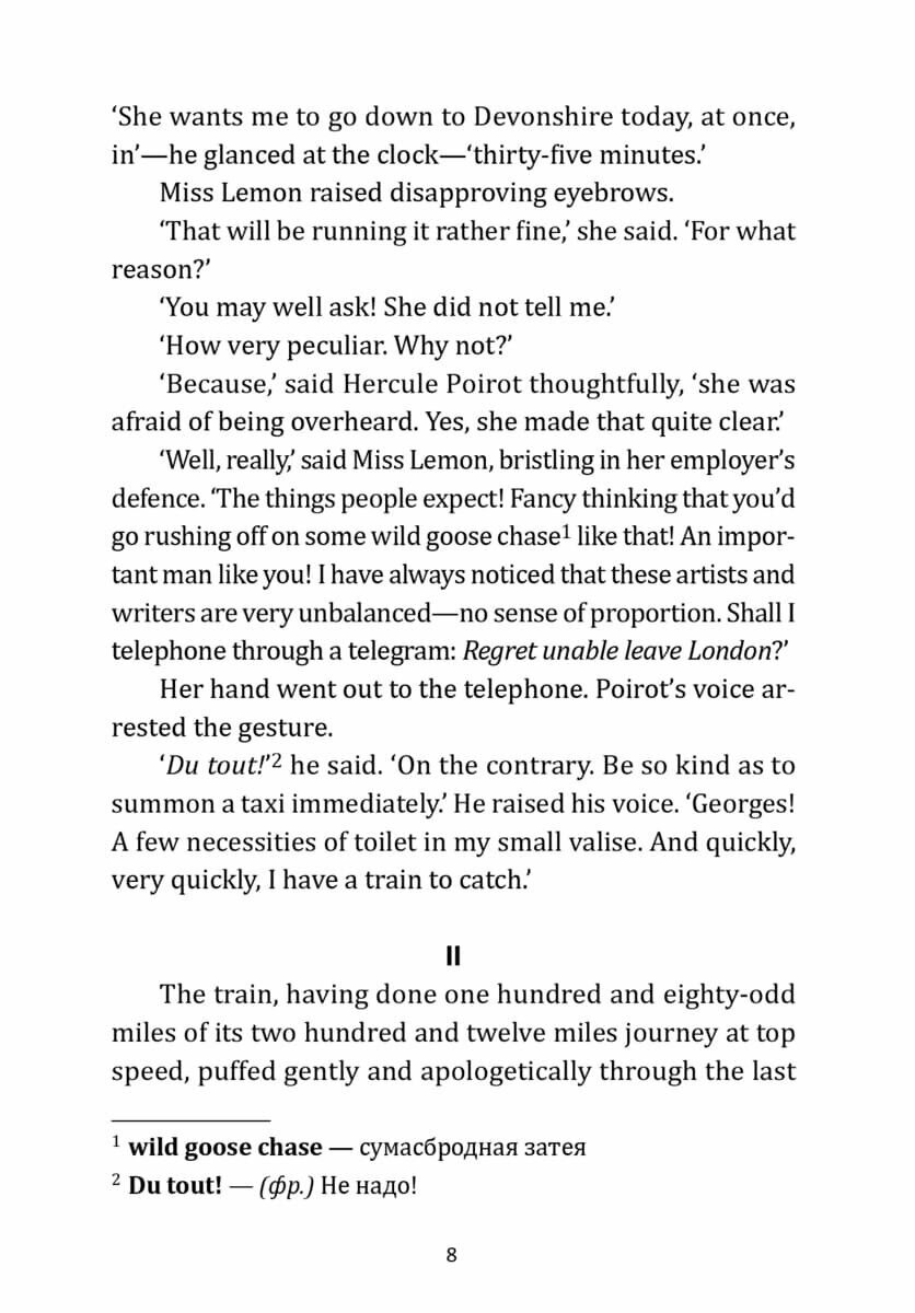 Я прочитала практически все произведения Агаты Кристи про Эркюля Пуаро и была очень обрадована и приятно удивлена, когда нашла произведение, с которым ещё не знакома. Да ещё и на языке оригинала. Это отлично поможет мне при изучении английского языка.