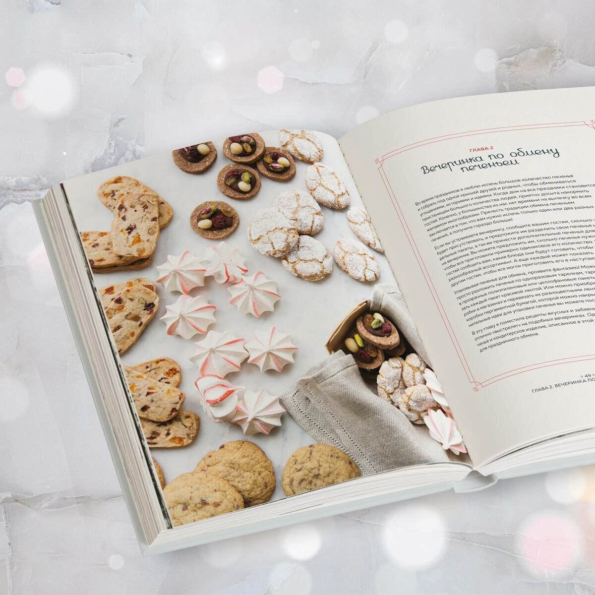 Если с тортами мне все более-менее понятно, то с печеньем всегда были проблемы. Прилипает к бумаге, крошится, разваливается, поэтому решила прокачать навык приготовления именно этого вида сладостей. Книга «Праздничная выпечка» послужила отличным помощником.
