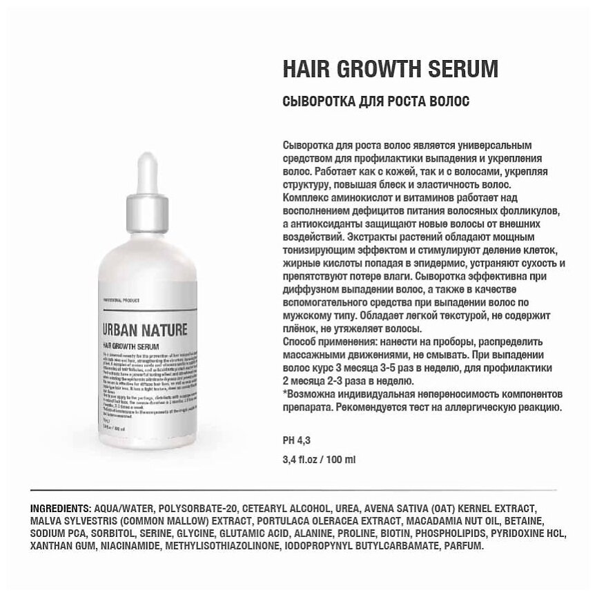 Urban Nature Сыворотка против выпадения и для роста волос 100 мл (Urban Nature ) (ЭХ99989431144)