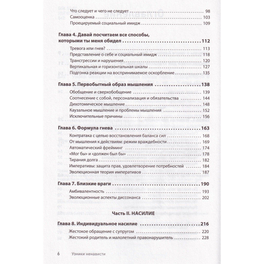 Автор пишет об огромной, просто колоссальной проблеме нашего мира, не смотря на то, что мы привыкли говорить, что живем в цивилизованном обществе и современном мире. Проявлений враждебности и агрессии людей целое множество и разного масштаба. Войны и геноцид, преступность, до сих пор не верится, что за домашнее насилие в нашей стране всего лишь штраф, да еще и минимальный. Автор - психотерапевт с помощью своей книги внес немалый труд в понимание природы ненависти с точки зрения когнитивной психологии и психотерапии для того, чтобы узнать как с ней бороться в целом и как каждому из нас противостоять и разрешать причины собственной ненависти и злости. В качестве физической книги - это капля в океане всего того, что нам приходится переживать день за днем, но если такой материал будет целенаправлено использован для просвещения людей, то этот труд будет глобальным, мы хотя бы начнем об этом говорить. Сам материал отлично адаптирован под большую аудиторию - популярная психология, без серьезных научных терминов и таблиц, все написано простым языком для обычных читателей, которые выберут эту книгу, как для саморазвития и расширения кругозора, потому что, как уже сказала, главная проблема, на которой строится книга - масштабна, и затрагивает каждого из нас, так и для изучения себя, потому что в каждом из нас так или иначе это есть.