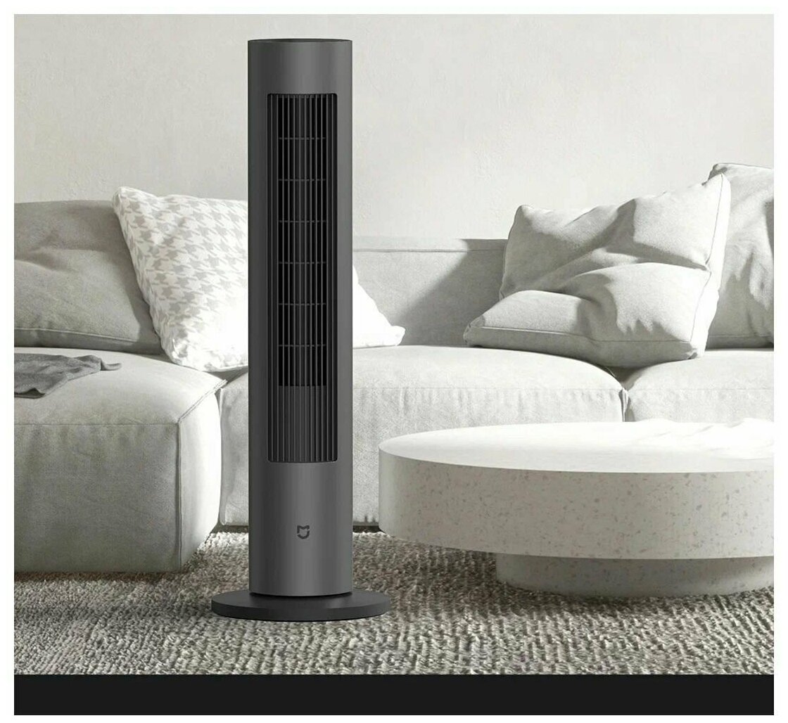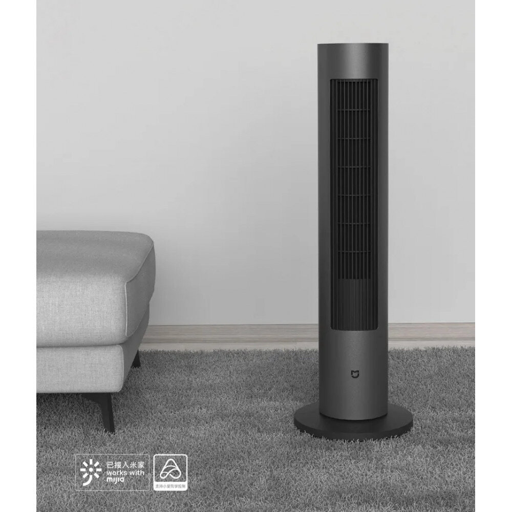Напольный вентилятор Xiaomi Mijia DC Inverter Tower Fan с воздухообменом 541 куб.м/час. Угол обдува до 150 град., максимальный уровень шума 63 дБ. Удаленное управление через телефон, на корпусе есть механические кнопки. Ширина отверстий решетки 6,9 мм. Напольный вентилятор Xiaomi Mijia DC Inverter Tower Fan выполнен в форме цилиндра и устойчивым основанием. Кнопки управления находятся в верхней части устройства, есть светодиодная индикация. Особенности: В максимальном режиме вентилятор обеспечивает воздухообмен до 541 куб.м/час. Есть возможность регулировки интенсивности воздушного потока от бриза до сильного ветра. Корпус из ABS-пластика устойчив к ультрафиолету и загрязнениям. Автоматический поворот на 150 град. Уровень шума в ночном режиме 34 дБ, в турбо 63 дБ. Узкие решетки дефлектора (6,9 мм) обеспечивают безопасность детей и домашних животных. Есть функция таймера и энергосберегающий режим.