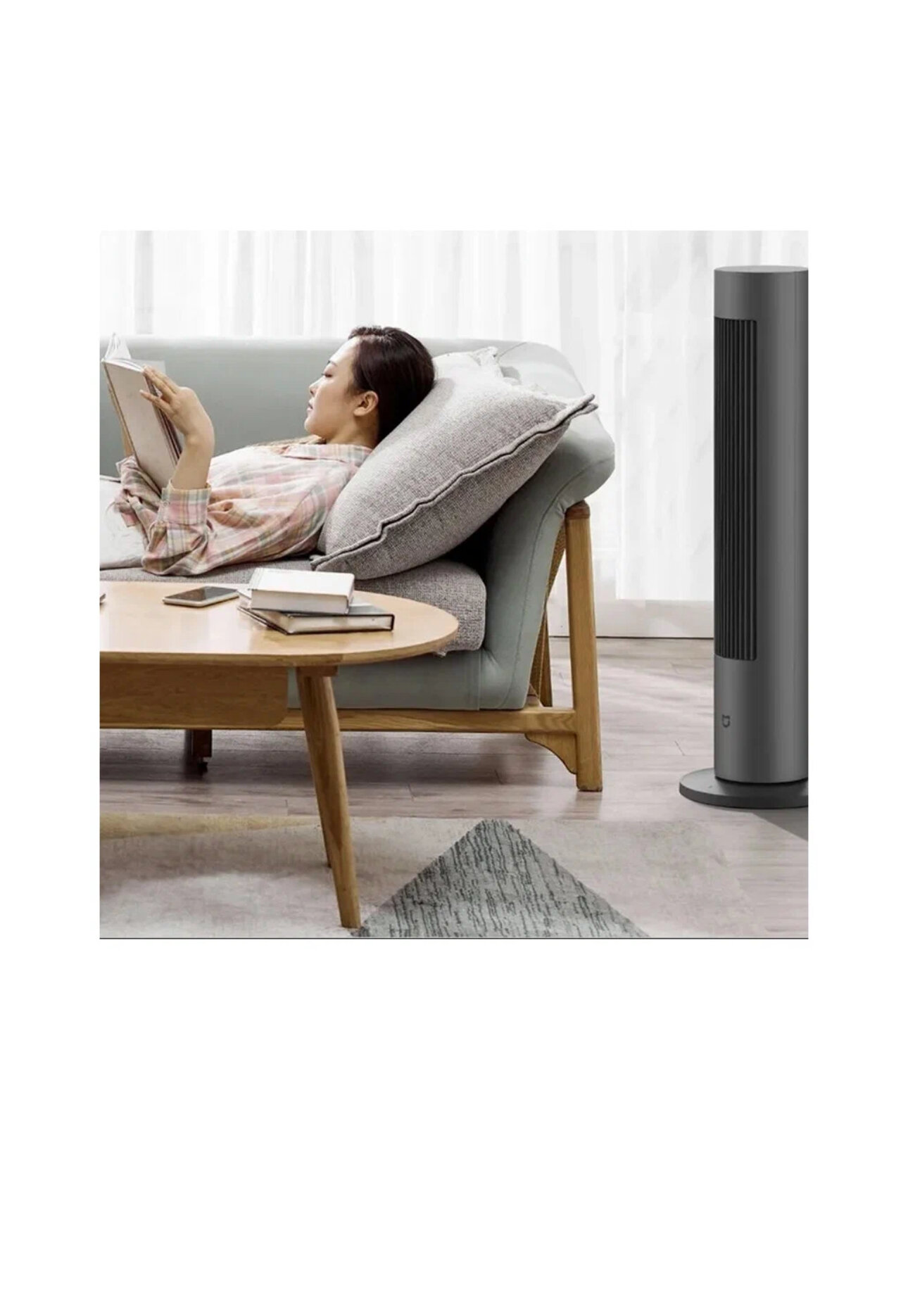 Кстати, угол наклона вентилятора можно настроить через приложение. Во время поворота он не издаёт шума. Вы можете контролировать силу обдува.
