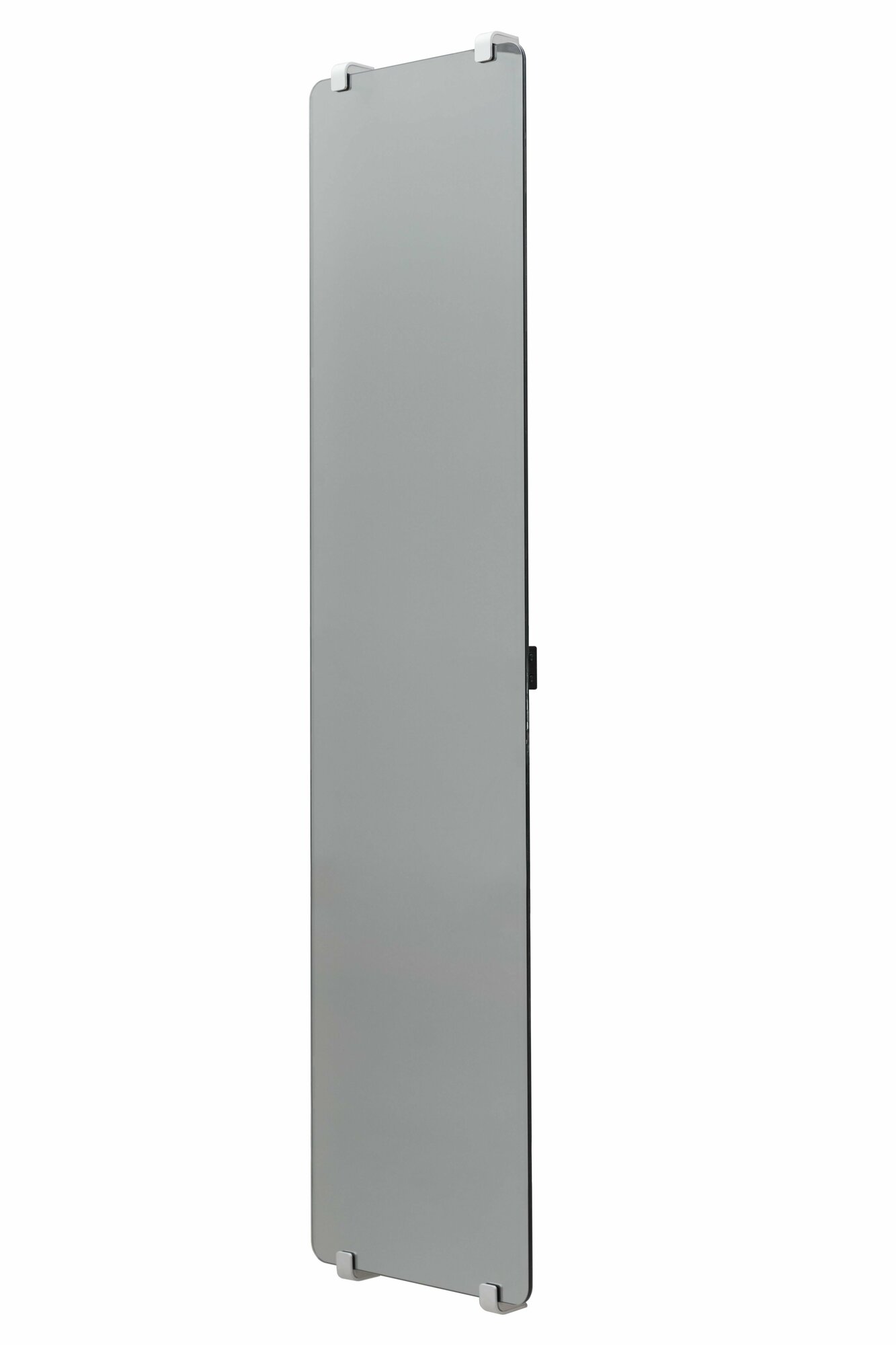 Электрический полотенцесушитель Allen Brau INFINITY 180х44 8.21006.GL зеркальный. Технические характеристики: Электрический полотенцесушитель. Зеркальный корпус (4мм+4мм триплекс, токопроводящее напыление). Элементы фурнитуры из брашированного анодированного алюминия. Принцип работы: 80% - инфракрасное излучение, 20% естественная конвекция. Как это работает: На стекле нанесено специальное напыление которое проводит электрический ток. При прохождении тока сквозь напыление происходит нагрев поверхности. Поверхность стекла начинает испускать инфракрасное излучение. Происходит нагрев не только зеркальной поверхности полотенцесушителя но и остальных поверхностей в ванной комнате. Безопасность: Класс защиты IP54. 2-х зонный нагрев (Верхняя часть до 90 С | Нижняя часть до 60 С)