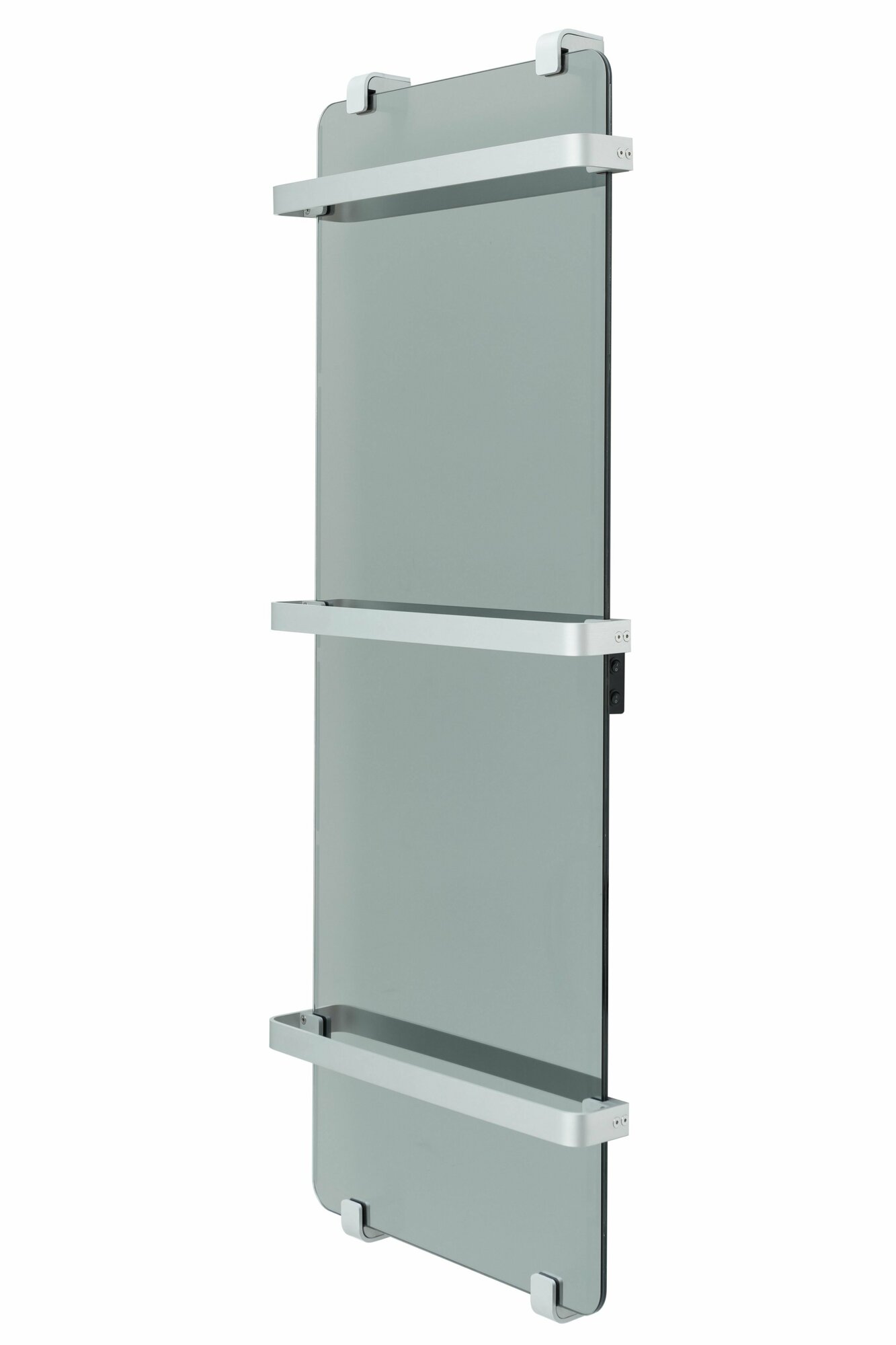 Электрический полотенцесушитель Allen Brau INFINITY 120х44 8.21003.GL зеркальный. Технические характеристики: Электрический полотенцесушитель. Зеркальный корпус (4мм+4мм триплекс, токопроводящее напыление). Элементы фурнитуры из брашированного анодированного алюминия. Принцип работы: 80% - инфракрасное излучение, 20% естественная конвекция. Как это работает: На стекле нанесено специальное напыление которое проводит электрический ток. При прохождении тока сквозь напыление происходит нагрев поверхности. Поверхность стекла начинает испускать инфракрасное излучение. Происходит нагрев не только зеркальной поверхности полотенцесушителя но и остальных поверхностей в ванной комнате. Безопасность: Класс защиты IP54. 2-х зонный нагрев (Верхняя часть до 90 С | Нижняя часть до 60 С)