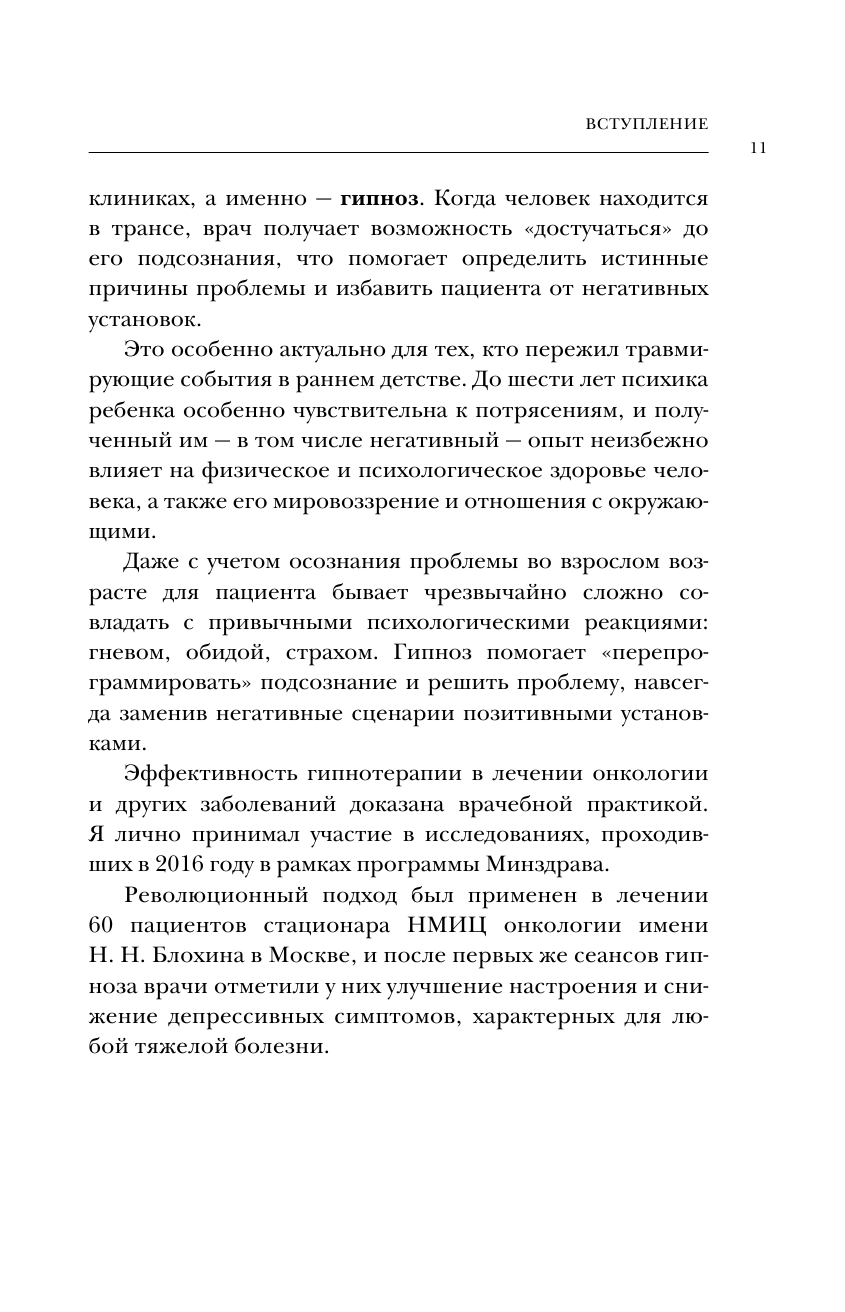 Работа над собой, физические упражнения, правильное питание и полноценный сон – все это очень важно для физического здоровья, вне всяких сомнений. Но не менее важно проходить также психотерапевтическое лечение. Кандидат медицинских наук Марат Шафигуллин, врач психосоматической медицины и профессиональный психотерапевт утверждает, что самотерапия является ключом к выздоровлению. Гипнотерапия, самоубеждение, техники программирования сознания и позитивные установки, описанные в книге, помогут вашему организму встать на правильный путь и идти по нему до полного исцеления. А главное, что любой может сделать свои первые шаги к здоровью сам.