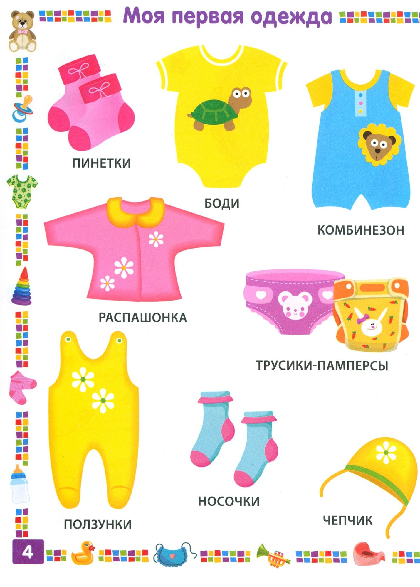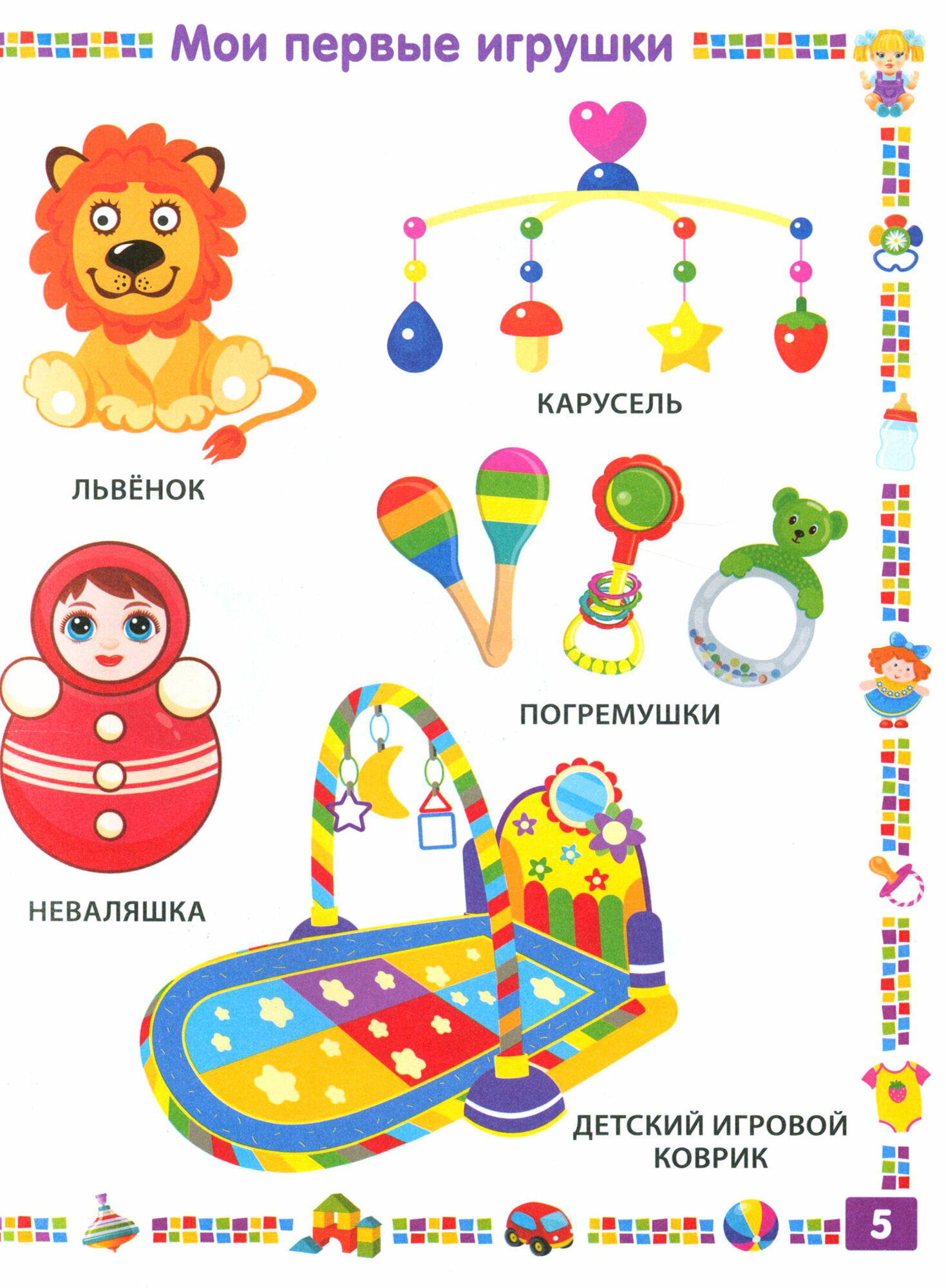 В вашем доме растёт маленькая любознательная девочка: её интересует всё вокруг, она живо реагирует на всё новое. Наша книга с первых лет жизни вашей дочки поможет вам познакомить её с миром, в котором она живёт: с одеждой, игрушками и вещами, фруктами и овощами, с самыми разными животными, птицами и растениями. А ещё в ней есть яркие симпатичные картинки. Они помогут вашей девочке понять и запомнить даже сложные вещи, научат различать формы и цвета, познакомят с понятием "противоположности". Сделайте прекрасный подарок вашему ребёнку!