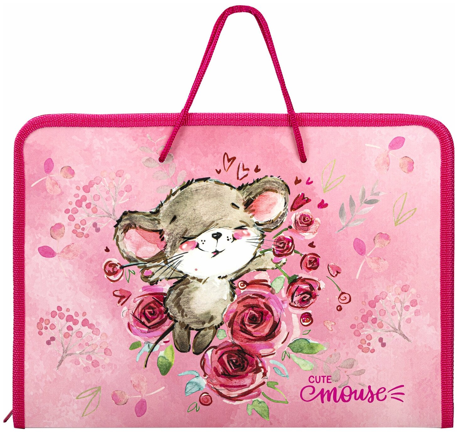 Папка для труда формата А4 с ручками выполнена из пластика, по краям имеет тканевую окантовку. Внутри папки откидная планка с креплениями для канцелярских и письменных принадлежностей. Застежка-молния расположена периметру папки.