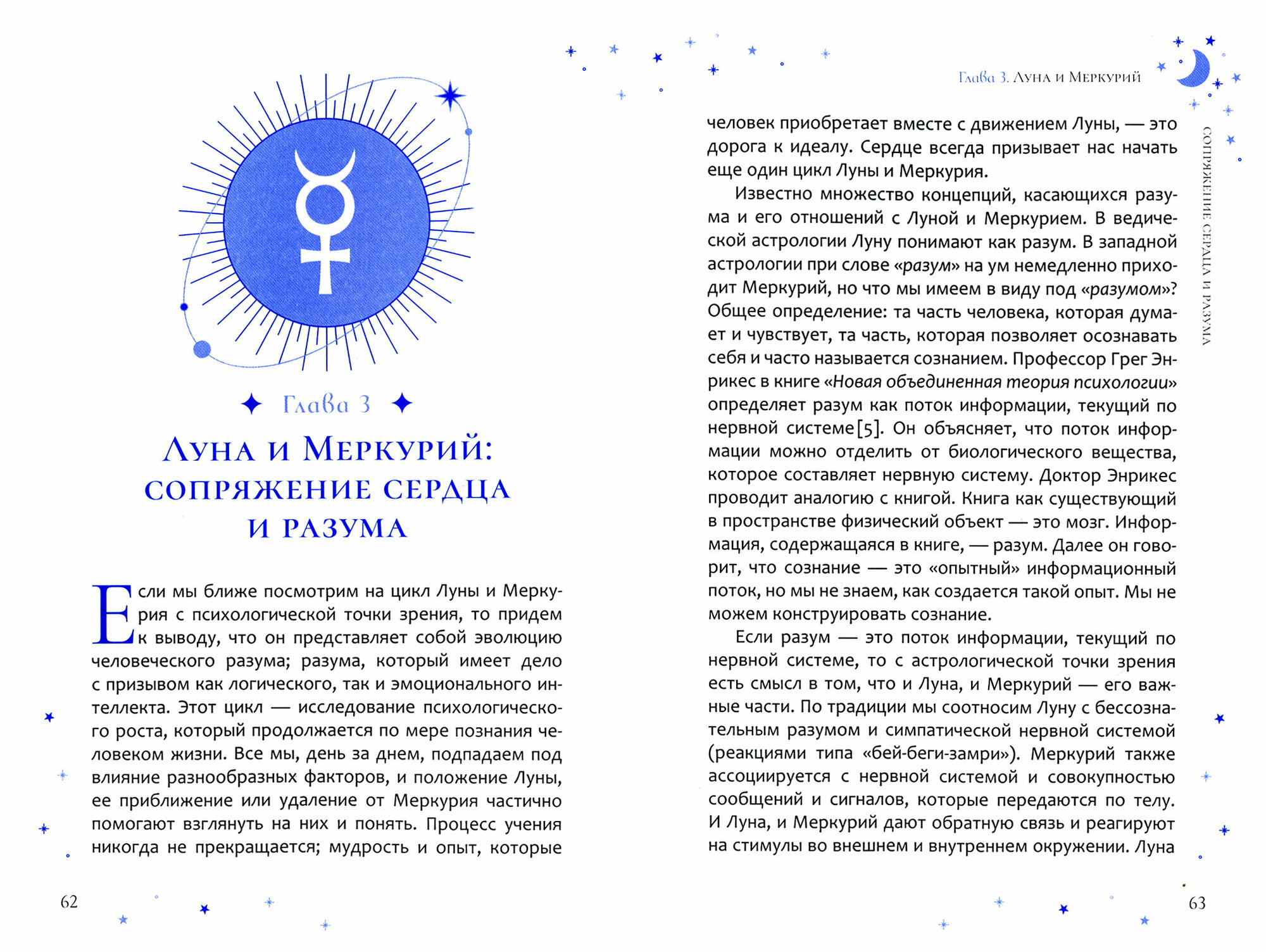Во многих отношениях Луна поддерживает текущее состояние нашей реальности и влияет на каждого из нас вне зависимости от того, обращаем мы на нее внимание или нет. Также Луна делает возможным анализ внутреннего «Я» и психологического благосостояния индивида. «Лунные ассоциации со знаками, домами, планетами и аспектами открывают динамику состояния человеческого благополучия. Цель нашей книги – подробно рассказать о том, как сблизить эго (глубинное личное «Я», воплощенное Луной) с различными аспектами себя, включая менее личностные (представленные другими планетами). Такое понимание освобождает разум и позволяет лучше видеть. Это ключ к тому, чтобы прожить жизнь легче и радоваться каждому новому дню».