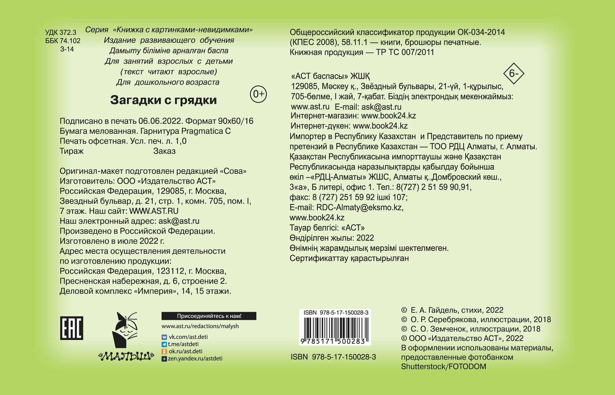 Сервис сравнения цен СкидкаГИД предлагает сравнить цены на товар «Книга: Загадки с грядки (Гайдель Екатерина Анатольевна); ИЗДАТЕЛЬСТВО "АСТ", 2022»