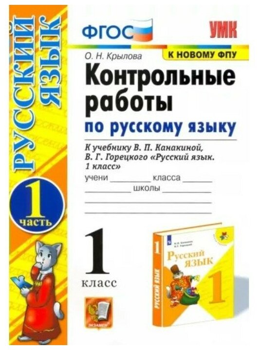 Контрольные работы по русскому языку 1 класс Часть 1 к учебнику В П Канакиной В Г Горецкого Русский язык 1 класс ФГОС НОВЫЙ (Крылова Ольга Николаевна); Экзамен, 2023