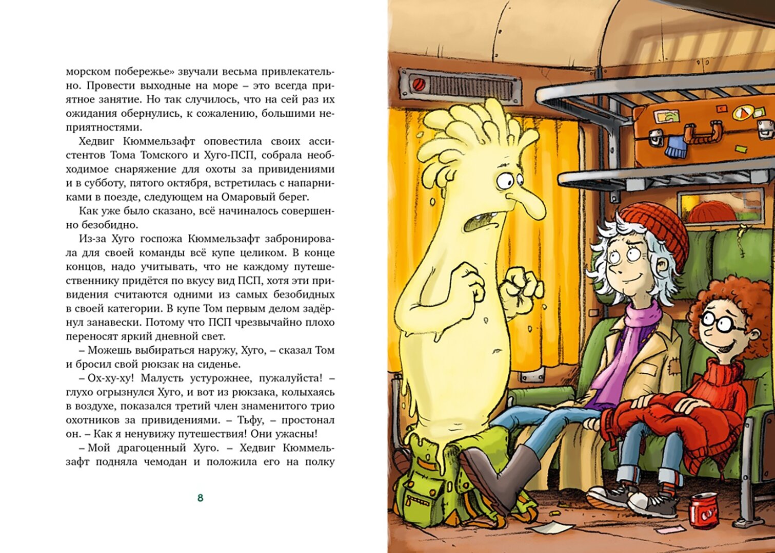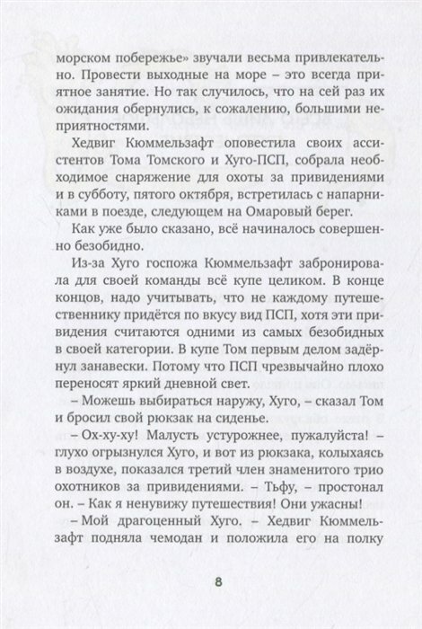 Ребёнок прочитал первую книгу из серии про привидешек и попросил продолжение. Книга написана достаточно простым языком (имена не в счёт), шрифт и междустрочный интервал подходит для чтения детьми. В книге много цветных иллюстраций, которые позволяют в полной мере ощутить эффект присутствия на месте происшествия.