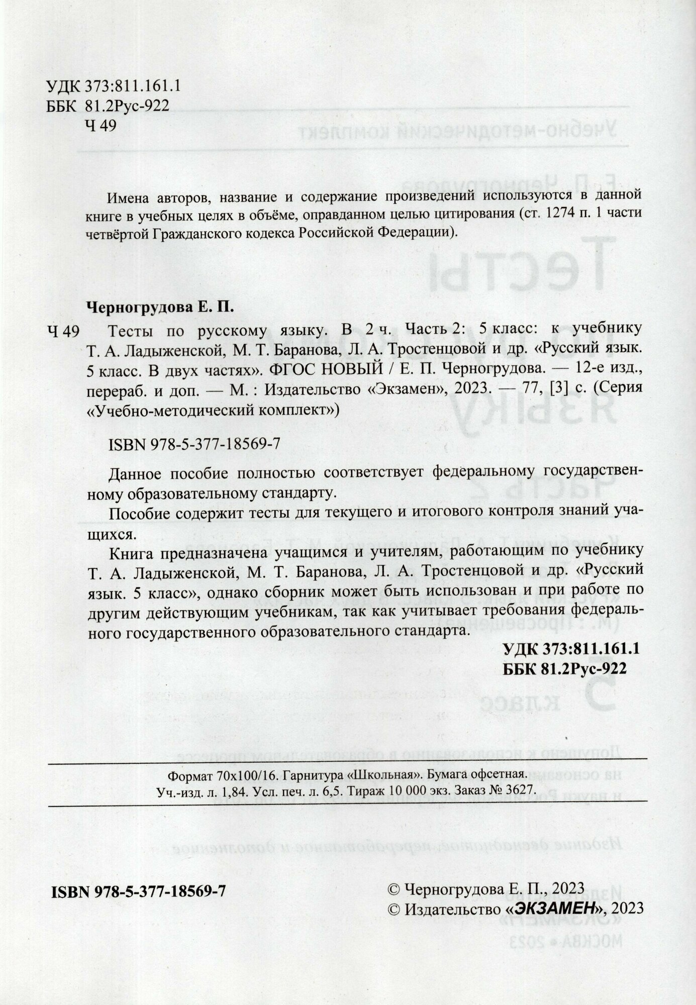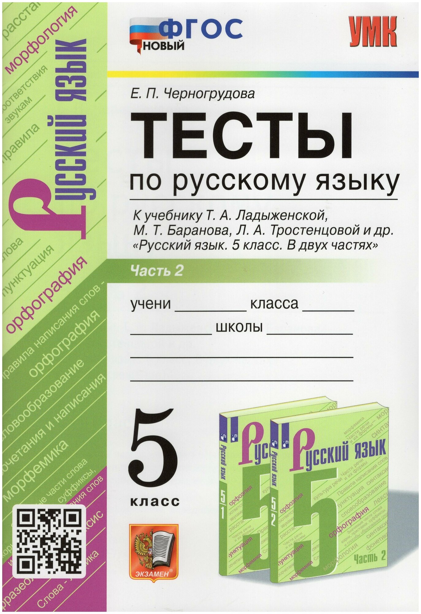 Тесты по русскому языку В 2-х частях Часть 2 5 класс к учебнику Т А Ладыженской М Т Баранова Л А Тростенцовой и др Русский язык 5 класс В двух частях ФГОС НОВЫЙ (Черногрудова Елена Петровна); Экзамен, 2023