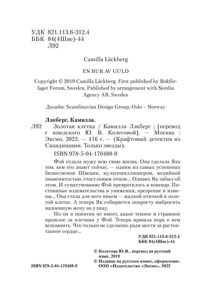 Книга: Золотая клетка (Камилла Лэкберг); ООО "Издательство "Эксмо", 2022