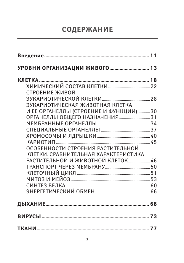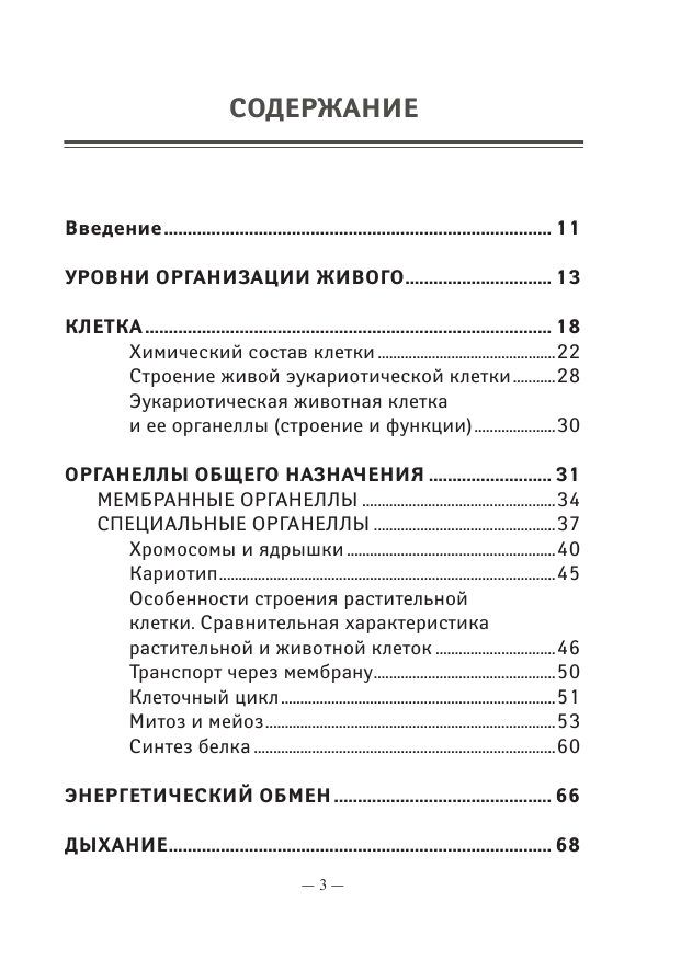 Книга содержит три раздела: общую биологию, многообразие живых организмов (вирусы, бактерии, грибы, лишайники, растения и животные) и анатомию и физиологию человека.