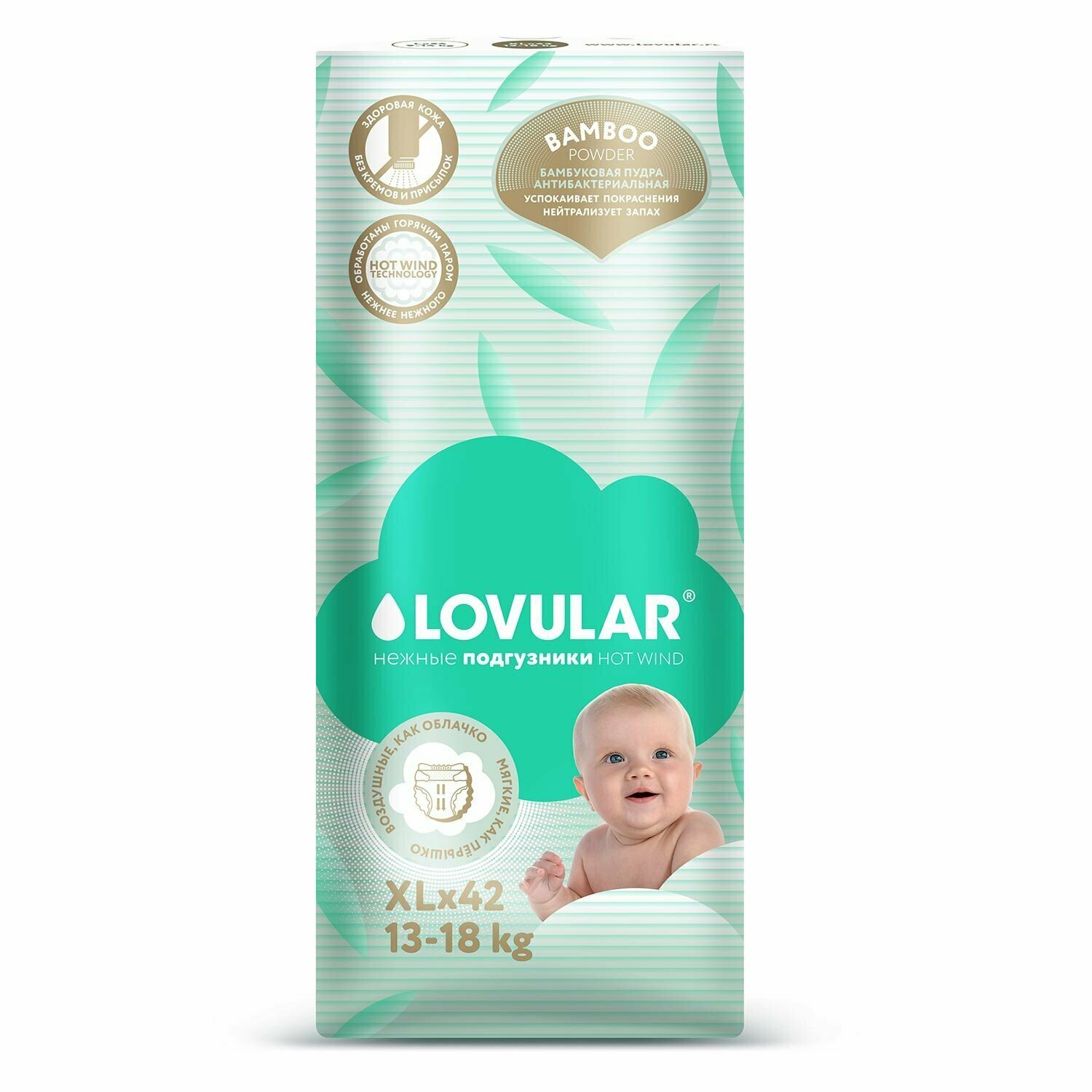 Подгузники Lovular Hot Wind Bamboo Powder XL 13-18кг 42шт