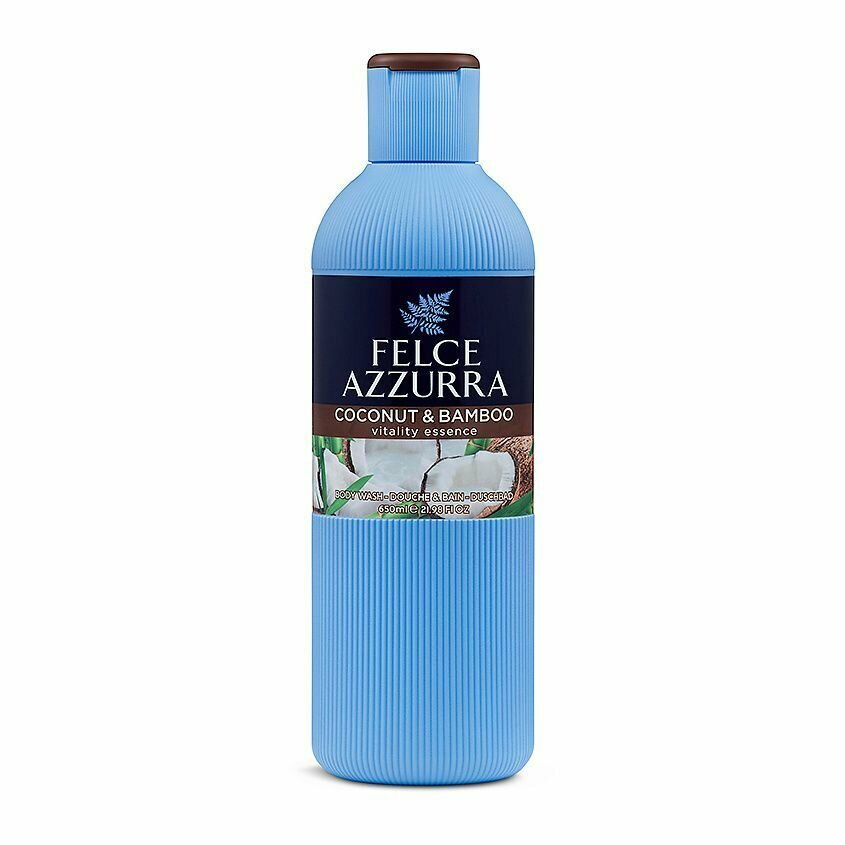 Гель для душа Felce Azzurra бережно очищает, не нарушает естественный липидный барьер. Тонизирует и повышает эластичность. Смягчает, предотвращает появление сухости и шелушения. Оставляет на теле приятный аромат. Верхние ноты — кокос и бергамот. В сердце — бамбук и жасмин. В шлейфе — мускус и бобы тонка. Густая консистенция — быстро пенится и хорошо смывается. Подходит для всех типов кожи. Можно использовать в бане и спа-салоне.