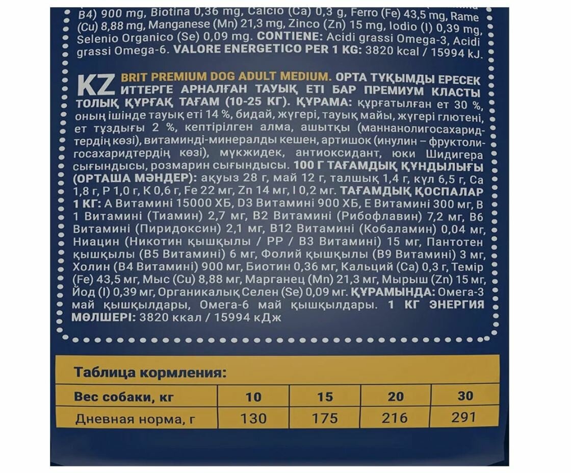 - Сухой корм Brit Premium Dog Adult M для взрослых собак средних пород Брит премиум М