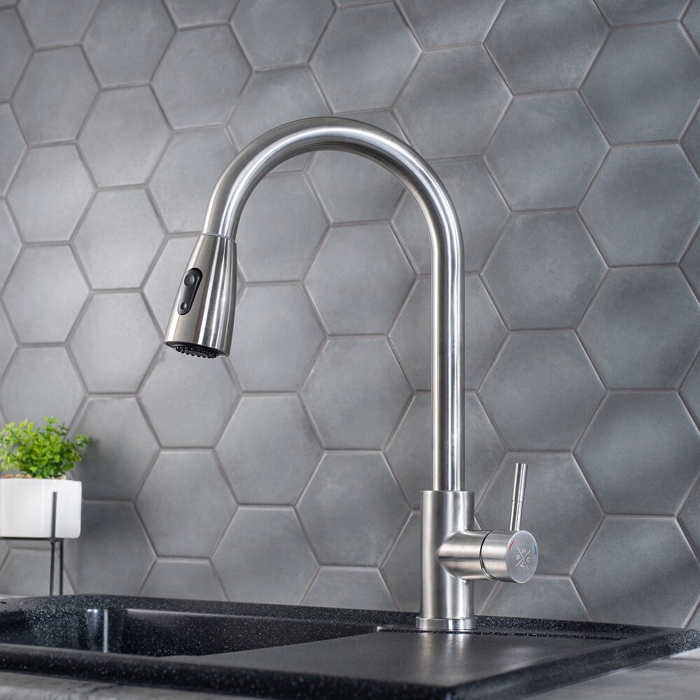 Смеситель для кухни Ростовская Мануфактура Сантехники SUS124-017F-2 с выдвижным изливом.
