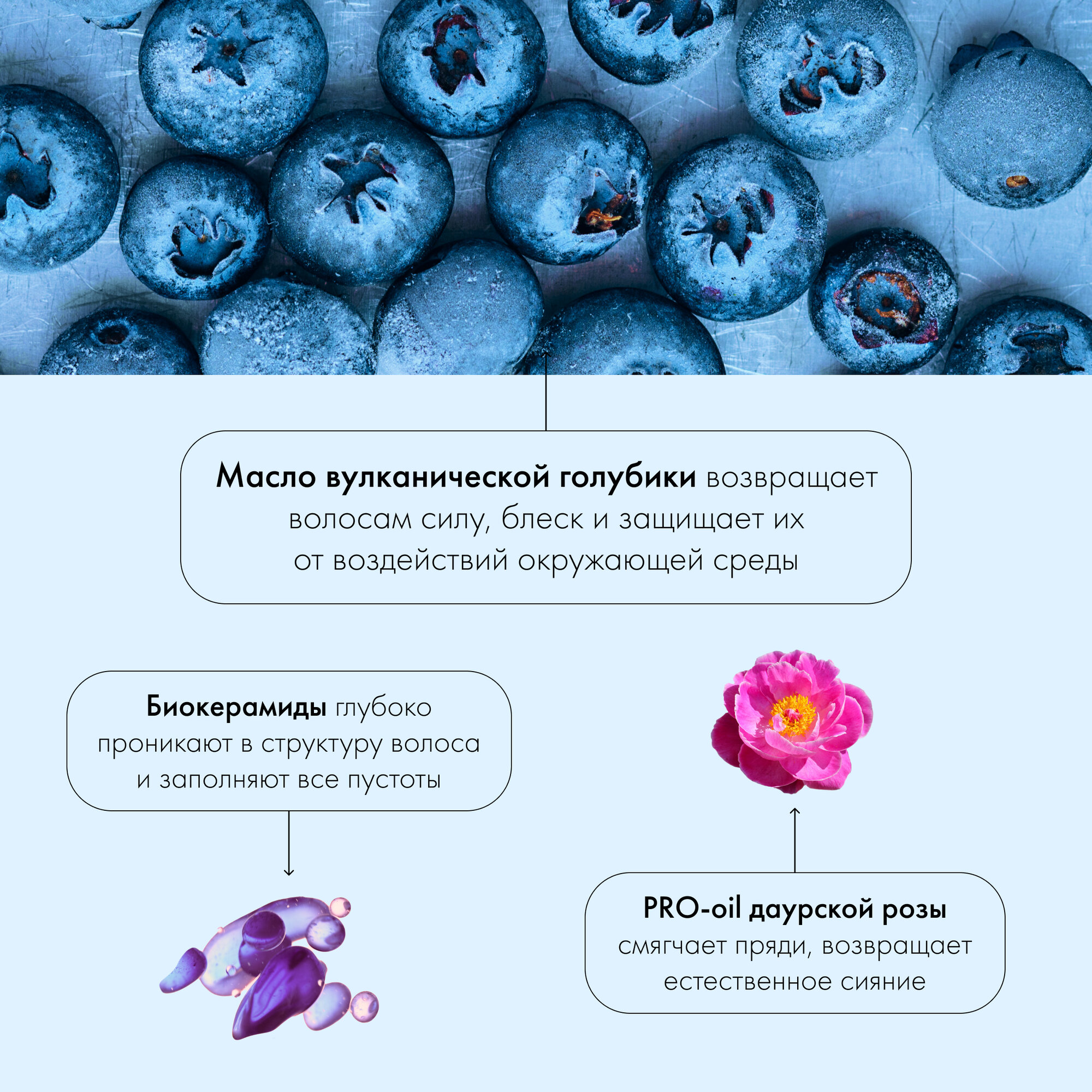 - Масло вулканической голубики помогает вернуть волосам силу, блеск и защитить их от воздействий окружающей среды.