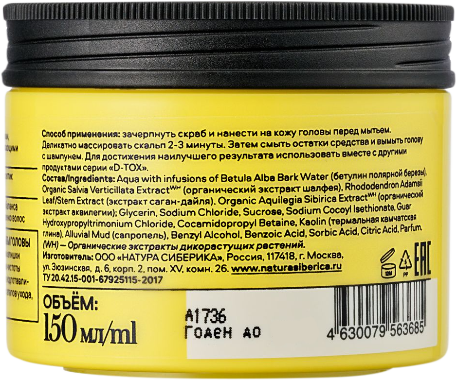 На сегодняшний день товар «Natura Siberica Скраб-маска для кожи головы перед мытьем D-Tox "Super детокс" 150 мл (Natura Siberica ) (ORSHOP8032)» можно купить с кешбеком в 1 магазине: Яндекс.Маркет