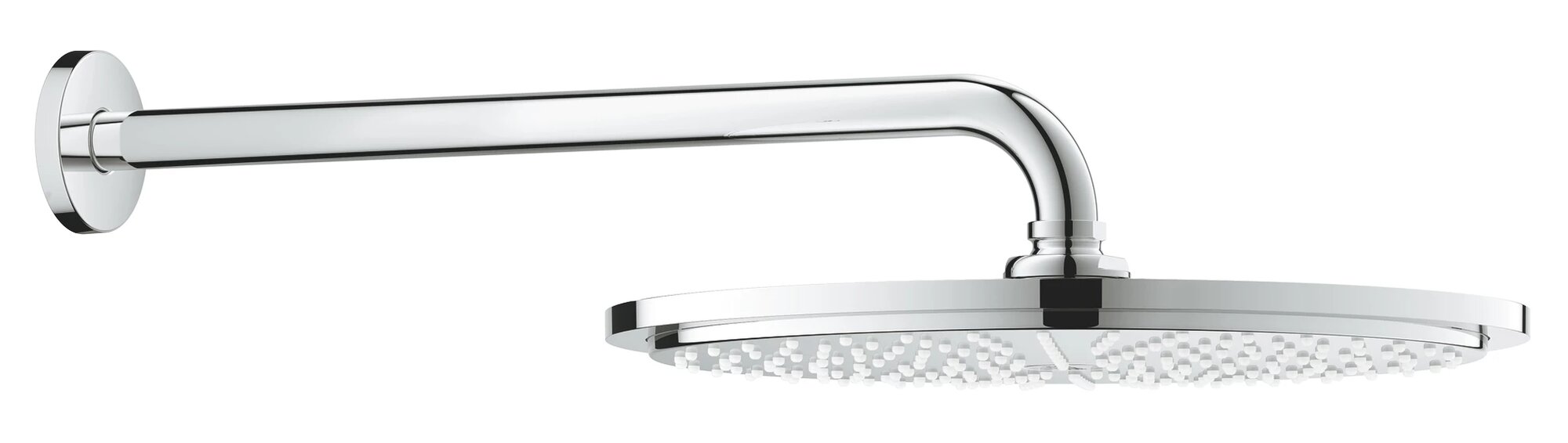 Верхний душ Grohe Rainshower Cosmopolitan выполнен из качественного металла и является долговечным, удобным в пользовании оборудованием, с которым комфортно выполнять водные процедуры. Большая круглая лейка крепится к стене при помощи надежного кронштейна. Он изготавливается из трубки круглого сечения, имеет длину 38 см. Цвет хром.