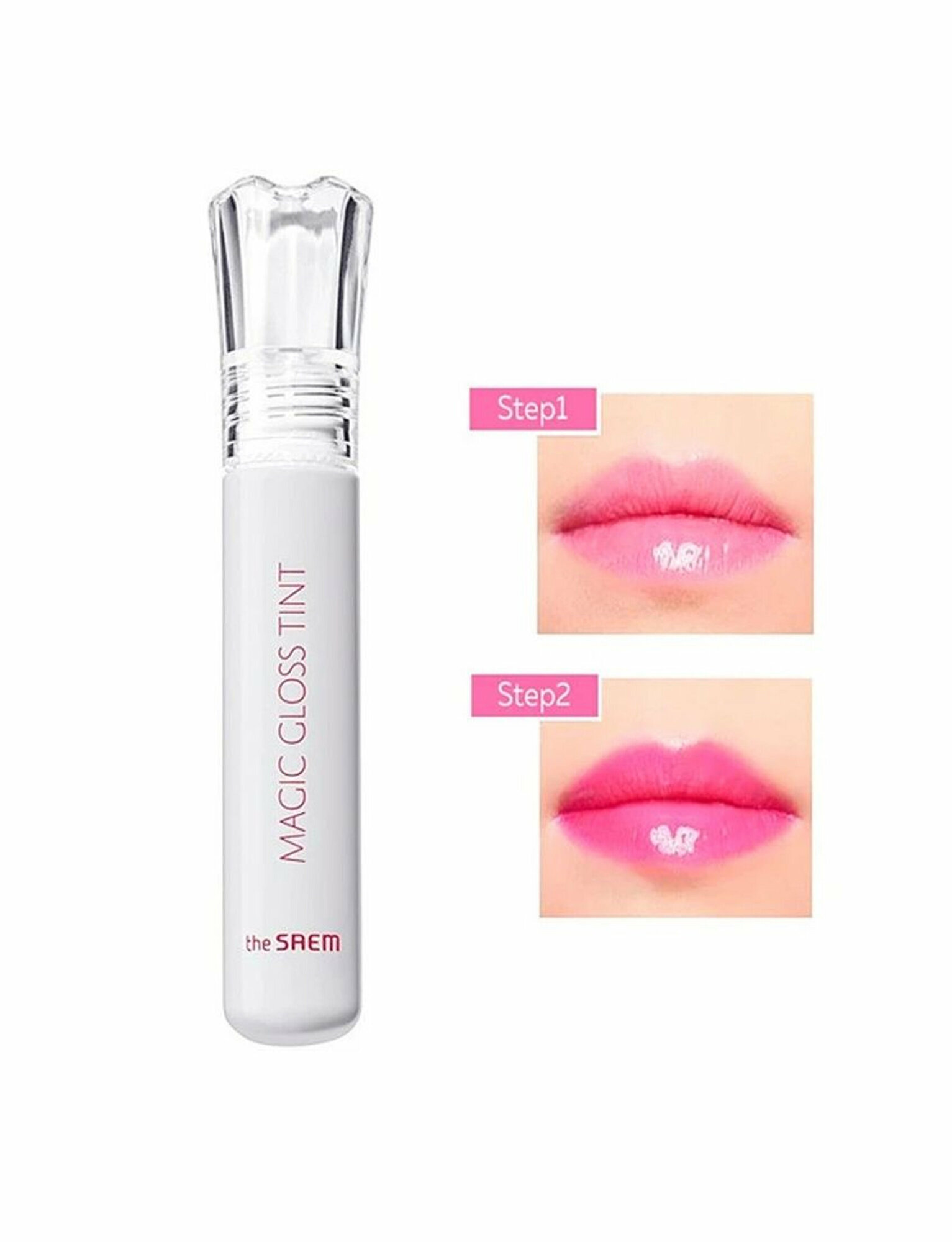Необычный тинт для губ The Saem Saemmul Magic Gloss Tint. На вид абсолютно прозрачный, при нанесении на кожу губ он проявляется, окрашивая губы в ярким и сочный оттенок. Гелевая текстура средства помогает придать губам блеск и дополнительный визуальный объем.