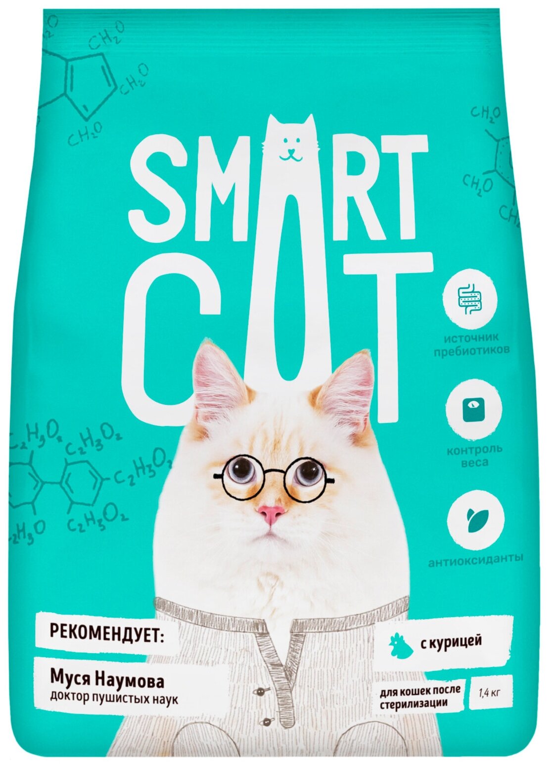 - Корм для стерилизованных кошек сухой SMART CAT с курицей 1,4кг