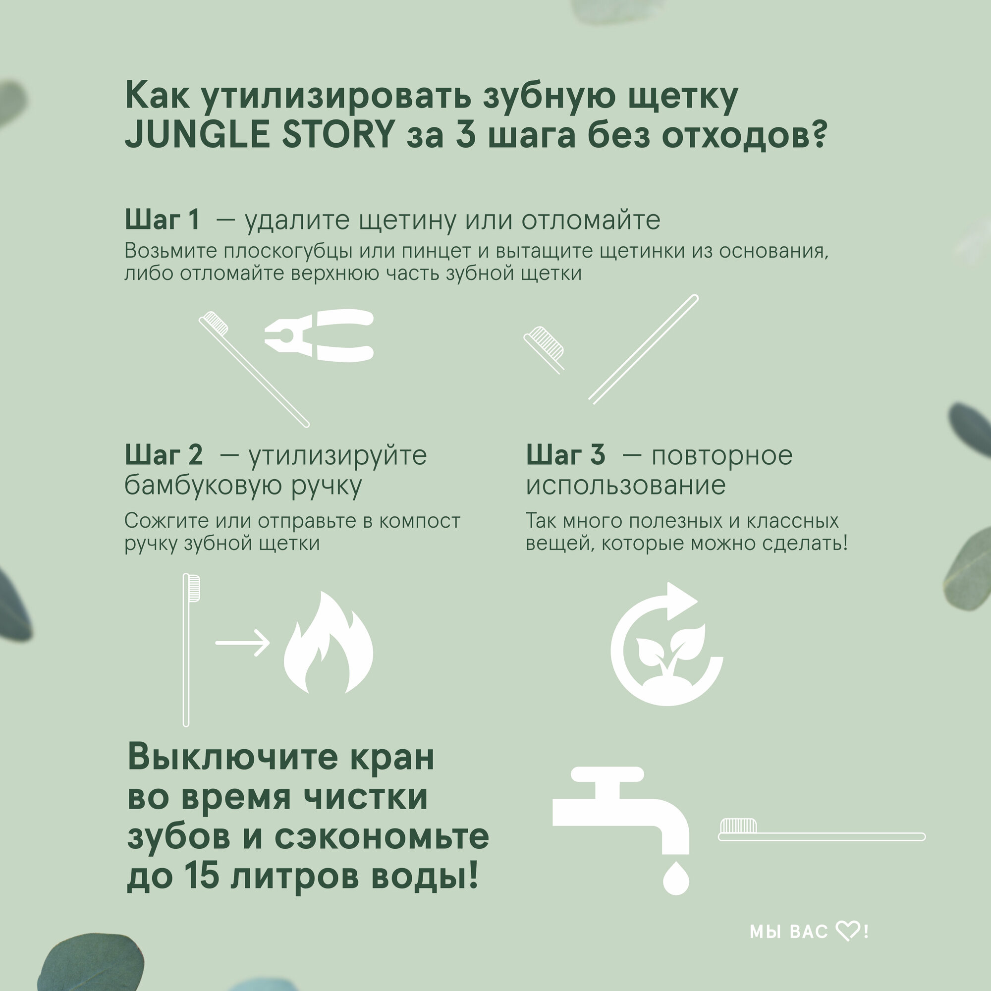 Перед использованием следует промыть щетинки. Так как случается иногда, что некоторые щетинки слабее закреплены в натуральной деревянной основе, нежели в пластике и могут частично выпасть. Не волнуйтесь всё в порядке, такое случается, хоть и редко. Щётки Jungle Story мягко чистят зубы, не царапая дёсны и не повреждая эмаль. А окружающая среда будет защищена благодаря использованию возобновляемого сырья. Ручка изготовлена из быстрорастущего бамбука Moso, который биологически разлагается. Щетинки Jungle Story средней мягкости без BPA, эффективно удаляют зубной налет и зубной камень, обеспечивает тщательную чистку зубов, а также защищает десна и они производятся из возобновляемых источников на биологической основе Размер: 19 см Щетина: Средняя Жесткость Recommendation : In the office, Outdoors Activities, Travel, Going-out and Daily Life Стоматологи рекомендуют менять зубную щетку каждые 2-3 месяца Не рекомендуется чистить жесткой щетиной, может повредить эмаль и десна FDA | FSC | Vegan | Eco-friendly |100 % recyclable | Natural Antibacterial Мы решили использовать нейлон-6, потому что он имеет более низкую твердость, что хорошо для ваших дёсен, зубов, эмали и более низкое водопоглощение, что хорошо для поддержания гигиены вашей щетки по сравнению с другими типами нейлона. *Используя продукцию Jungle Story вы делаете нашу планету чуточку лучше и получаете удовольствие. Использовать меньше пластика ежедневно и быть частью больших изменений легко. Вы заботитесь о себе, своих близких и нашей планете.
