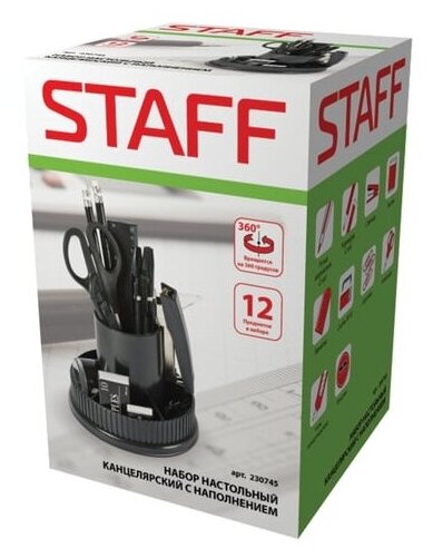 набор Staff "Раунд" 12 предметов вращ. конструкция черный 230745
