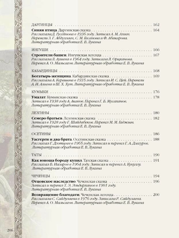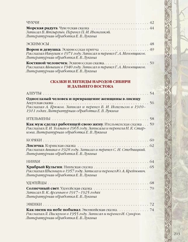 Новое собрание сказок и легенд народов России, составленное и обработанное писателем и историком Евгением Лукиным, откроет нам мир легенд и преданий карелов, ненцев, чукчей, эскимосов, якутов, бурят, татар, башкир, чувашей, чеченцев, адыгов и многих других народов нашей многонациональной страны.