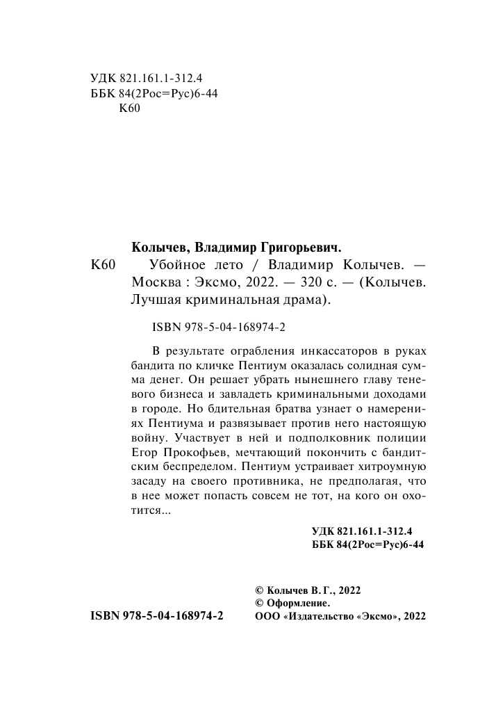 Сервис сравнения цен СкидкаГИД предлагает сравнить цены на товар «Книга: Убойное лето (Колычев Владимир Григорьевич); ООО "Издательство "Эксмо", 2022»