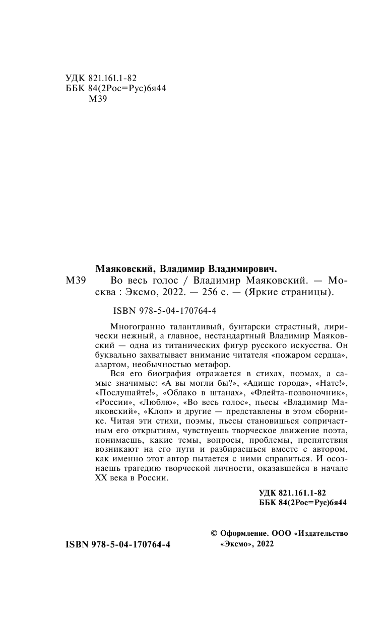 Книга: Во весь голос (Маяковский Владимир Владимирович); ООО "Издательство "Эксмо", 2022