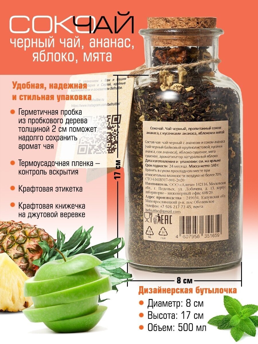Чай черный beFRUITbe Сокочай Ананас-Яблоко-Мята 140г