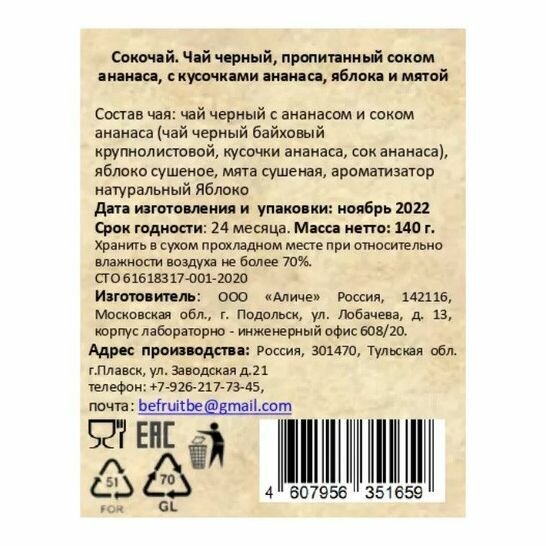 Сервис сравнения цен СкидкаГИД предлагает сравнить цены на товар «Чай черный beFRUITbe Сокочай Ананас-Яблоко-Мята 140г»