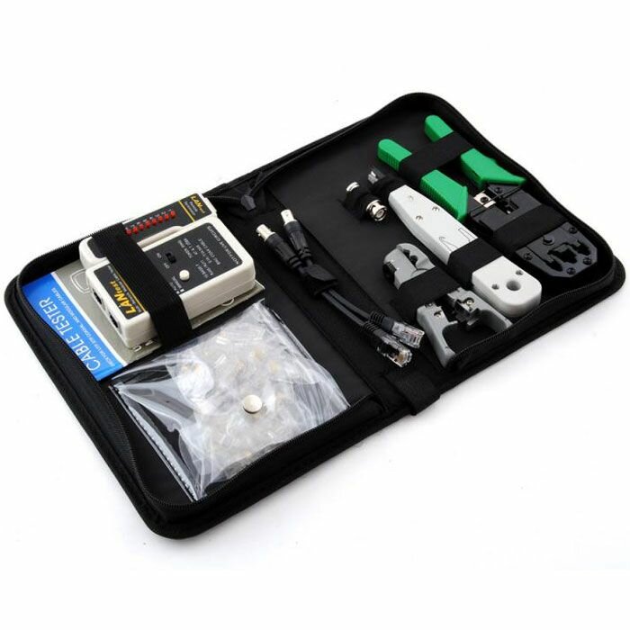 | Описание | LAN тестер, Инструмент для заделки витой пары, Инструмент для зачистки витой пары, Инструмент обжимной |