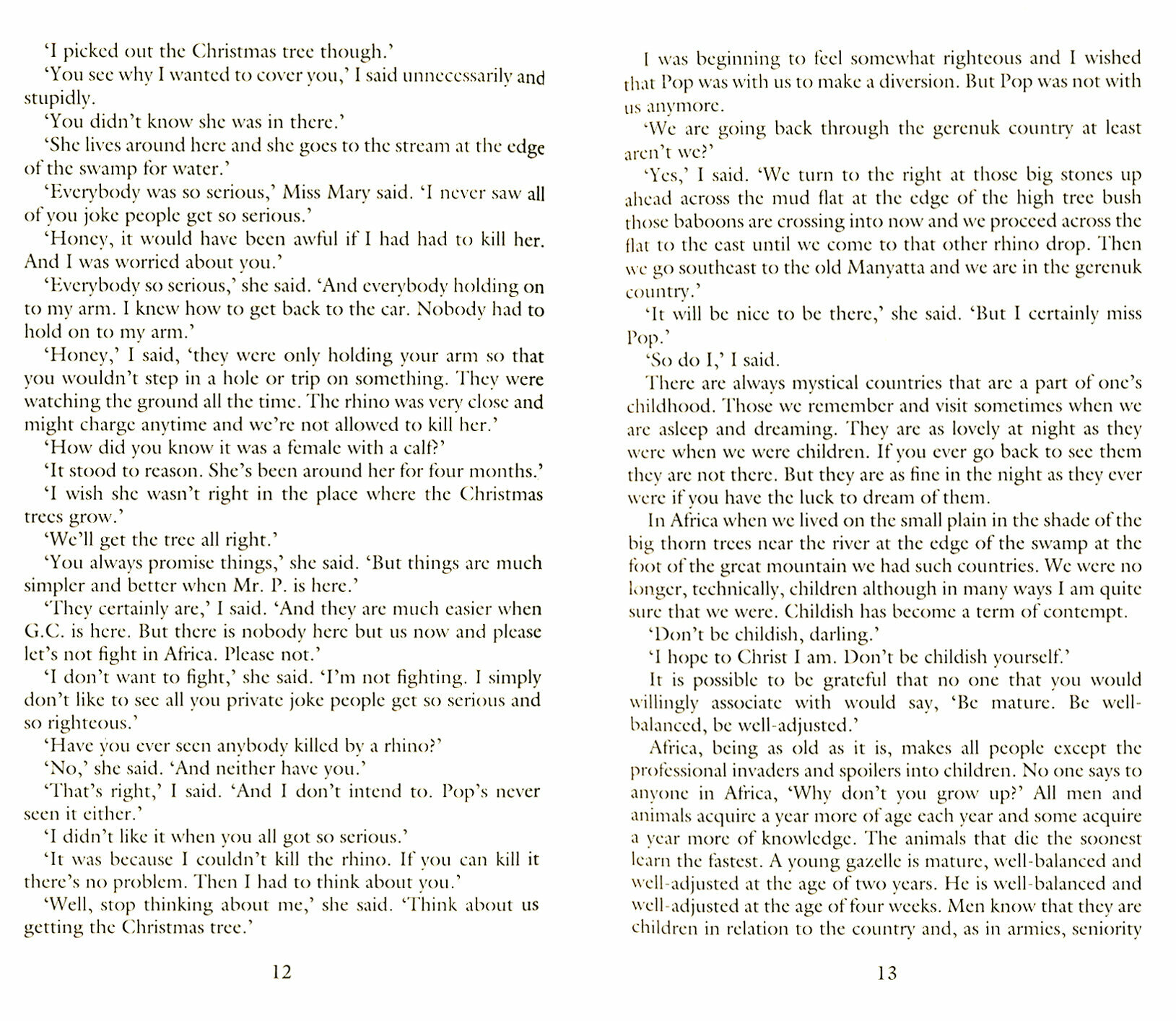 The book opens on the day Hemingway's close friend Pop, a legendary hunter, leaves him in charge of the camp. Tensions have heightened among the various tribes and news arrives of a potential attack on the hunters, forcing Hemingway not only to take on his new role of leader but, equally important, to assist his wife Mary in pursuing the great lion she is determined to kill before Christmas. Passionately detailing the African landscape, the excitement of the chase, and the heartfelt relationships with his African neighbours, Hemingway, a master of dramatic fiction, weaves a tale that is rich in laughter, beauty and insight.