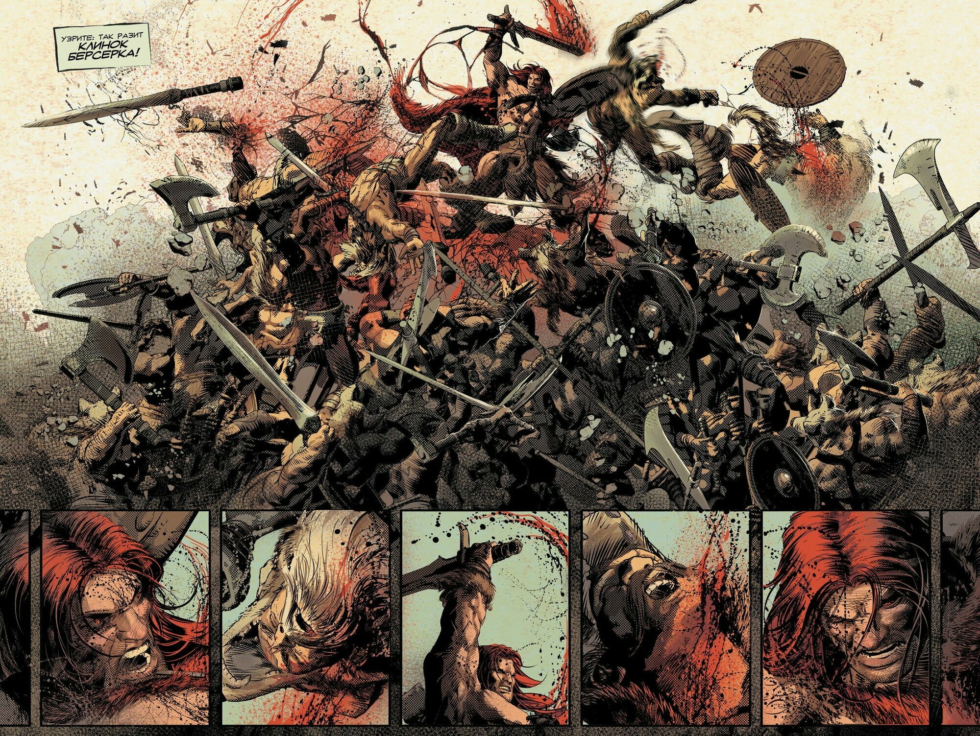 Русский перевод неожиданно удивляет присутствуем мата. С сюжетной точки зрения это оправдано, подчеркивает брутальность героев, а также делает повествование чуть более реалистичным. Но не очень. Фэнтези есть фэнтези, а сценарист не предлагает обилия сцен, где бы подчеркивалась приближенность повествования к текущим реалиям. А мог бы. Тема берсерка не раскрыта, а критика современных реалий слишком поверхностна и даже стерильна.