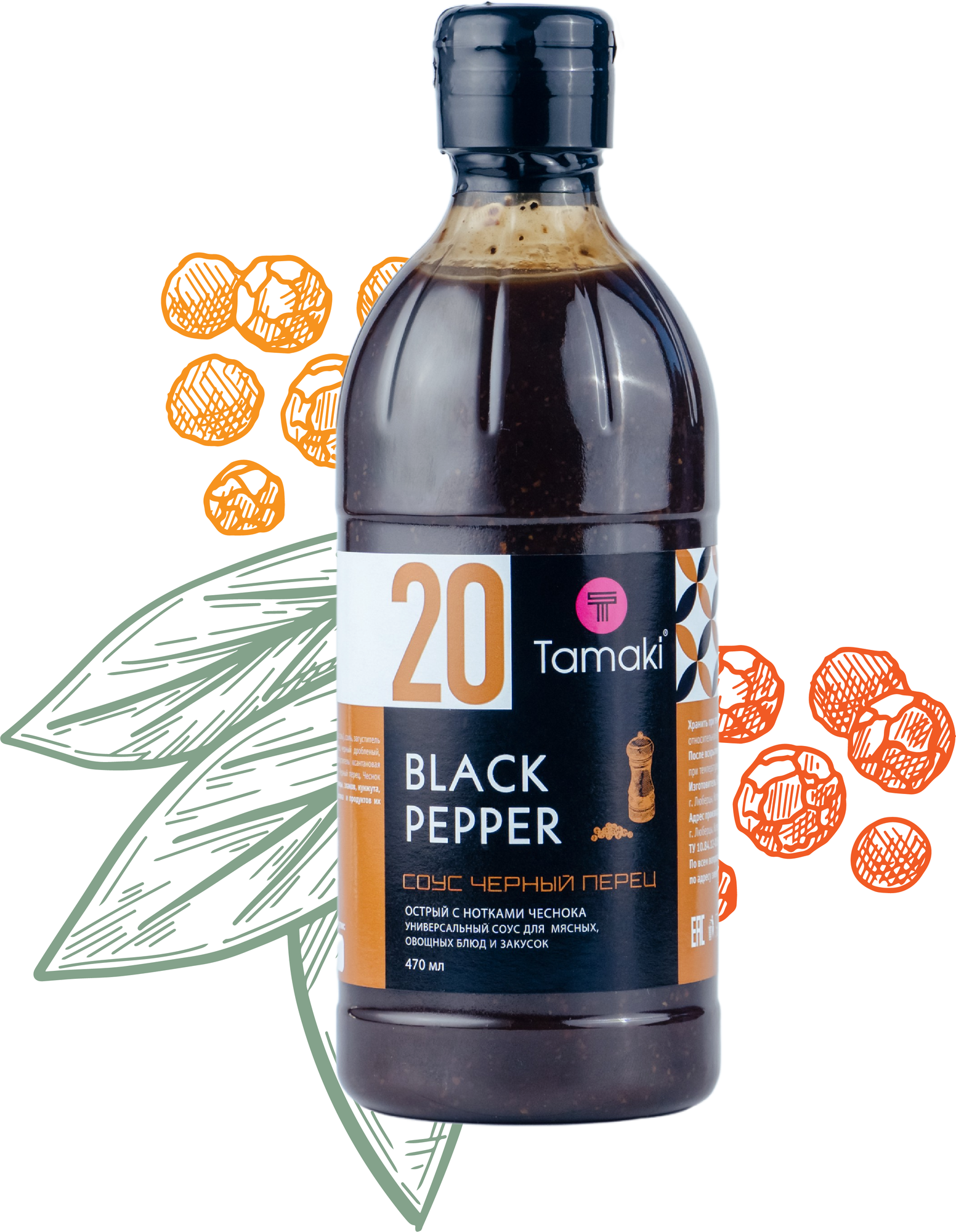 Этот соус является незаменимым помощником при приготовлении стейков разной прожарки. Он делает мясо более сочным, а его вкус - гармоничным и утонченным. В составе соуса есть 2 вида черного перца, которые придают ему терпкость, остроту и невероятный аромат. Соус Черный перец изготавливается по классической американской рецептуре. Азиатскую нотку ему придает соевый соус, заменяющий в составе соль. Соус можно подавать отдельно к готовым блюдам или же использовать в качестве маринада.
