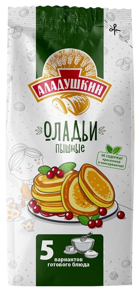 Нежные, вкусные, ароматные оладушки отлично подойдут для утреннего завтрака или вечерних посиделок за кружечкой чая. Мучная смесь Оладьи пышные ТМ Аладушкин - быстрый и удобный способ порадовать семью домашней выпечкой. В состав смеси уже включены все необходимые компоненты, что существенно облегчает процесс приготовления. Кроме того, из смеси можно приготовить оладьи с яблоком, творогом, кабачком, ветчиной и зеленью, сыром и зеленым луком. Рецептура тщательно проработана, поэтому Вам гарантирован отличный результат при минимальных усилиях. Современная герметичная упаковка не пылит, приятна на ощупь. Мучные смеси Аладушкин это супер результат без хлопот и без затрат!