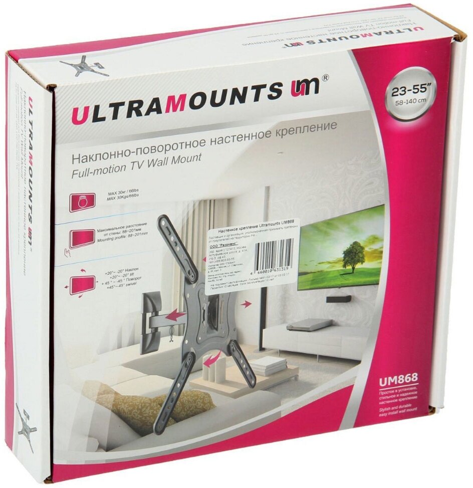 - UltraMounts UM868. Установка телевизора на стену с помощью наклонно-поворотного кронштейна UM868.