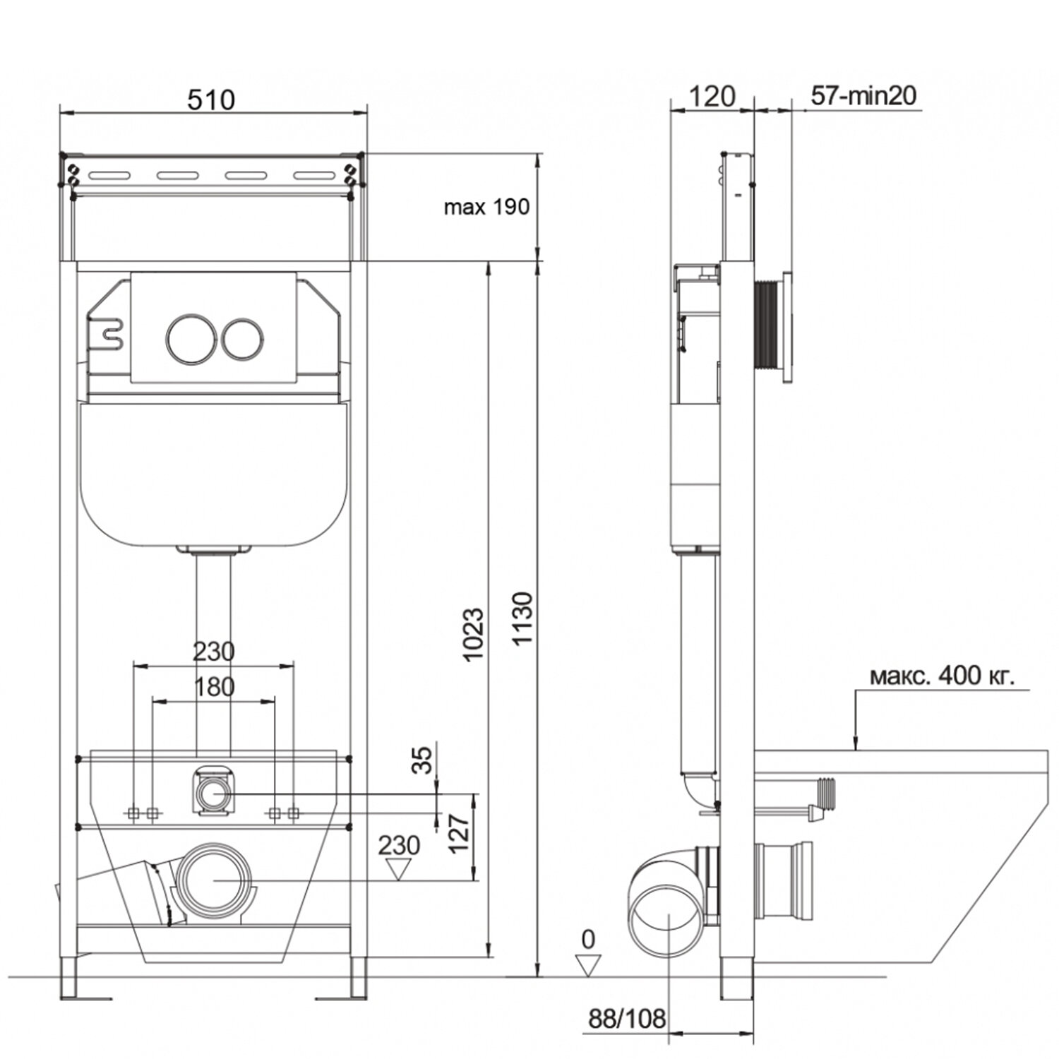 Инсталляция АКВАТЕК подходит для многоквартирных домов и объектов загородного строительства. Установка системы инсталляции позволит сэкономить площадь санузла и придать помещению аккуратный вид, так как посте монтажа все технические коммуникации скрываются за стеной или перегородкой. Основа инсталляции ∎ металлический каркас, который служит основанием для крепления сливного бачка и подвесного унитаза. Долговечное покрытие обеспечивает надежную защиту от коррозии. Поперечные ребра увеличивают жесткость и устойчивость конструкции. Максимально допустимая степень нагрузки составляет 400 кг.