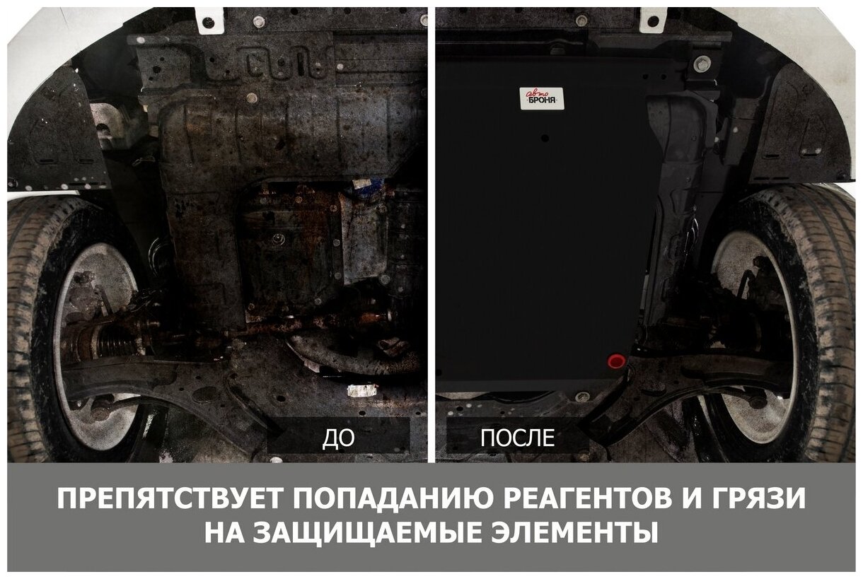 Обращаем ваше внимание, на тот факт, что защита имеет форму, соответствующую модели данного автомобиля. Наличие глубокого штампа и лючков для смены фильтровмасла предусмотрено не на всех защитах. Фото служит для визуального восприятия товара.