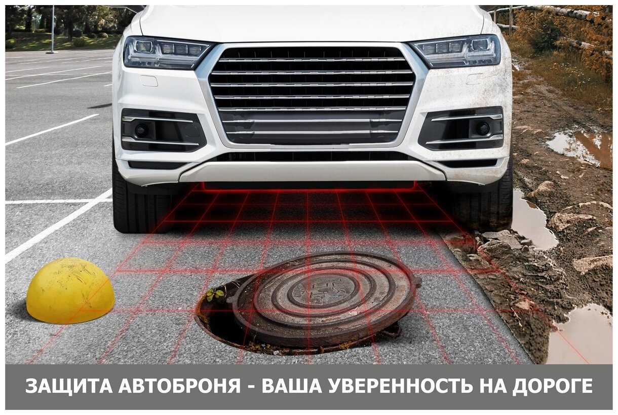 Стальные защиты Автоброня надежно защищают ваш автомобиль от повреждений при наезде на бордюры, выступающие канализационные люки, кромки поврежденного асфальта или при ремонте дорог, не говоря уже о загородных дорогах.