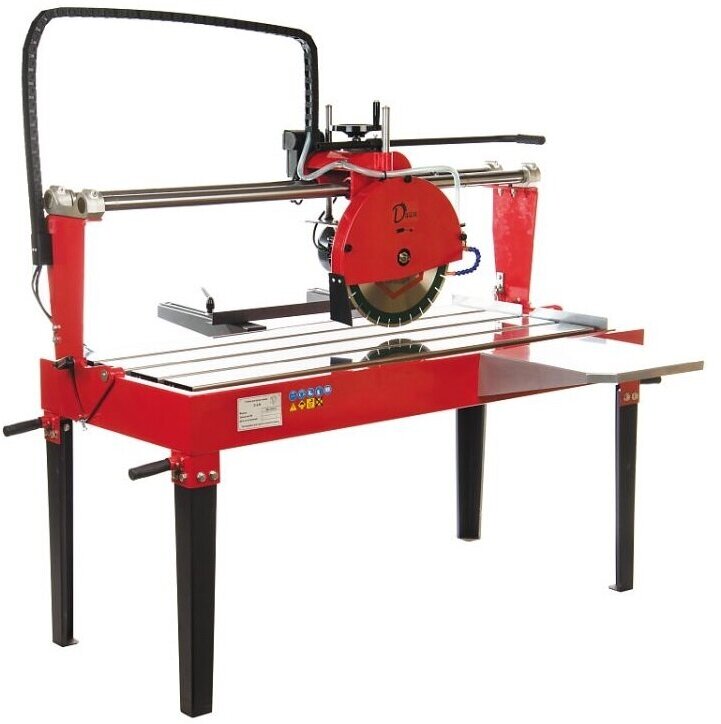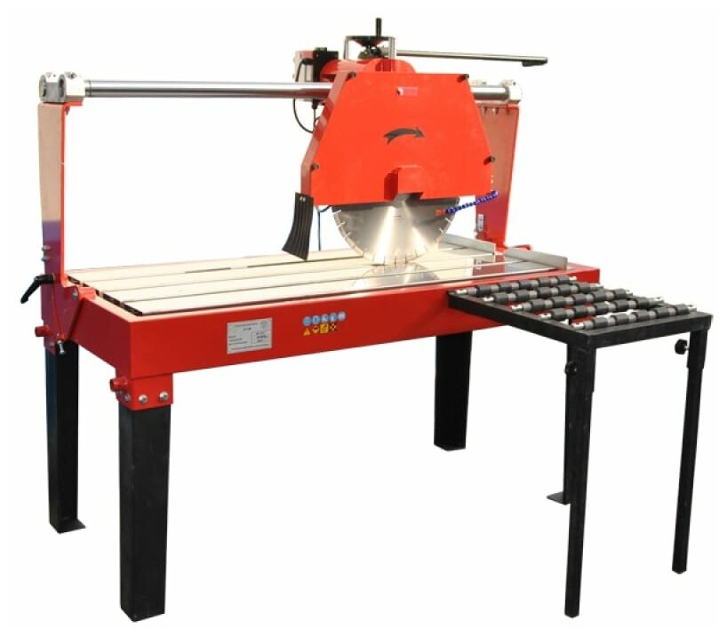 Станки обладают высокой точностью, позволяют резать алмазным диском под углом от 0 до 45 градусов. Вода подается на диск с помощью водяной помпы которая входит в комплект поставки. Электродвигатель оснащен защитой от перегрева. Станок позволяет резать заготовки длинной до 700 мм при полной глубине и установке диска 600 мм.
